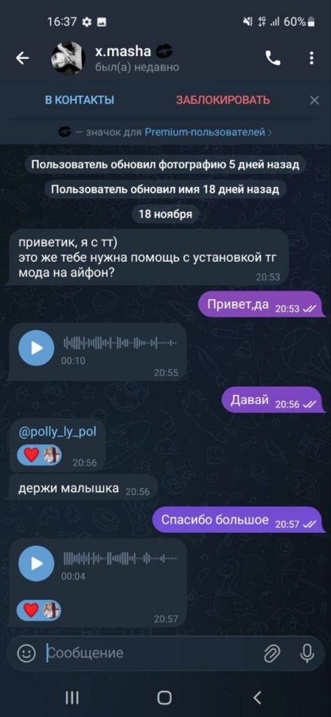 Девушка рассказала, что в социальной сети нашла рекламу по установке премиум аккаунта в одном из мессенджеров. Тут же, перейдя по ссылке, она попала в беседу со специалистом, которая обещала помочь, при условии выполнения ее инструкции.