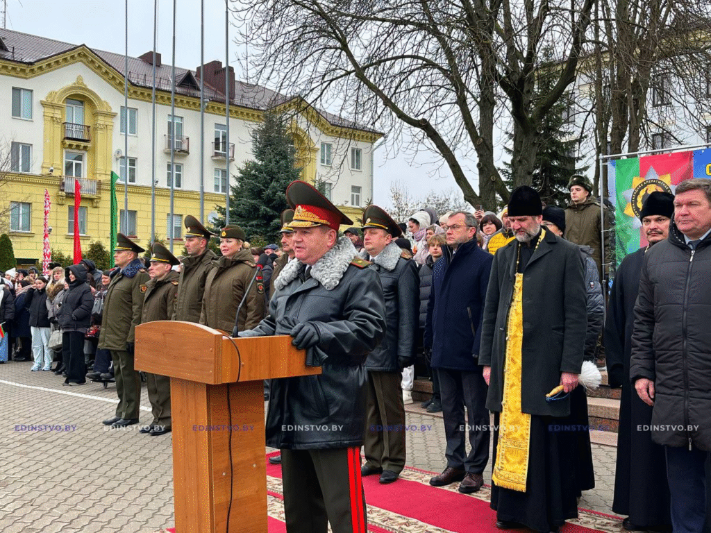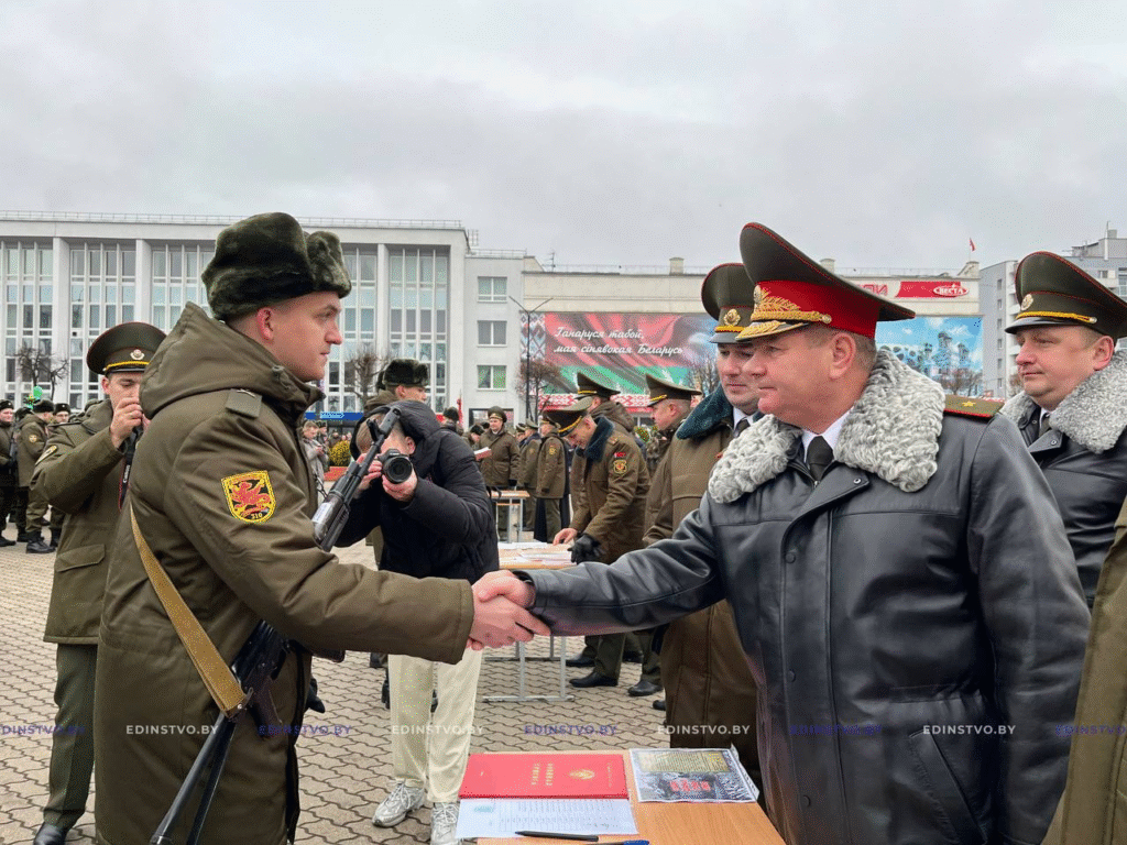 – Товарищи офицеры, прапорщики, сержанты и солдаты, уважаемые гости! Одним из символов единства нашего белорусского народа является армия. Служба в армии – это почетная и ответственная обязанность, которая возлагается на вас в связи с принятием Военной присяги. Принятие Военной присяги – это выбор служить Родине, защищать ее интересы и свободу. Это обещание выполнять свой воинский долг честно и самоотверженно, быть готовым защищать страну. Принятие Военной присяги – это не только юридический акт, но и моральное обязательство, которое является символом ответственности перед своим государством и народом. В этот торжественный для нас день в центре орденоносного города Борисов Военную присягу принимает очередное поколение воинов Северо-западного оперативного командования. Сегодня перед лицом своих командиров, товарищей, родителей вы поклянетесь верности своему народу и Республике Беларусь. Я уверен, что это знаковое событие войдет в биографию каждого из вас, как особый рубеж личной ответственности за защиту и безопасность нашего государства. Помните! Именно сегодня на ваши плечи ляжет ответственность за мирную, безопасную жизнь ваших родных и близких, ваш дом и нашу Родину. Твердо убежден, что сегодня в этом строю стоят настоящие воины, способные с честью и достоинством продолжить славные боевые традиции Вооруженных Сил Республики Беларусь и войск Северо-западного оперативного командования.