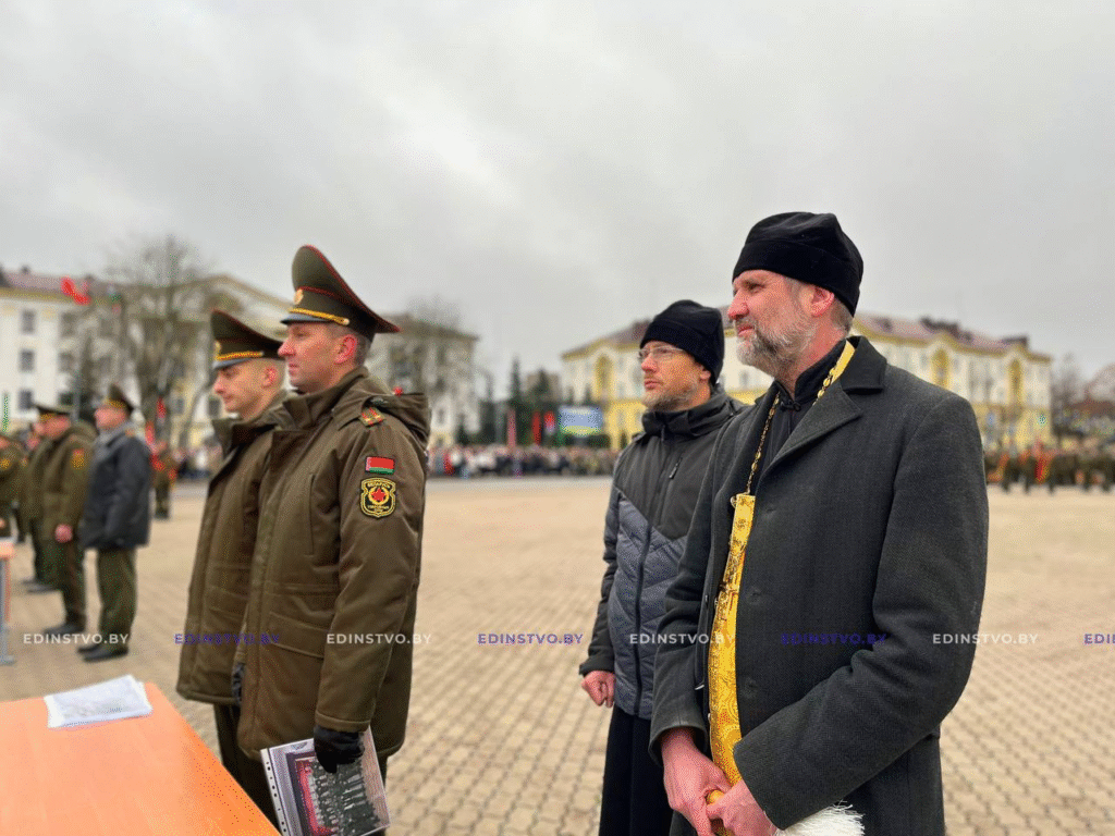 Молитвенно благословил военнослужащих на верное служение Отечеству и Богу священник Борисовской епархии иерей отец Сергий.