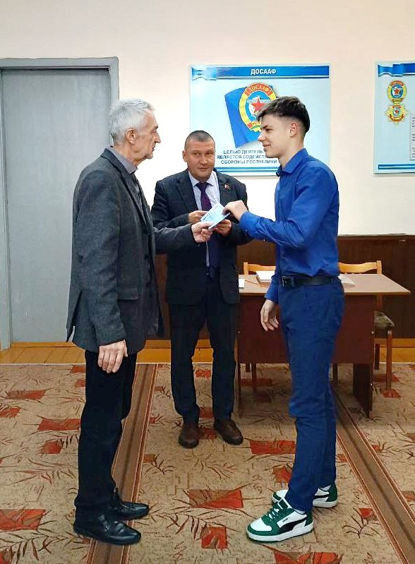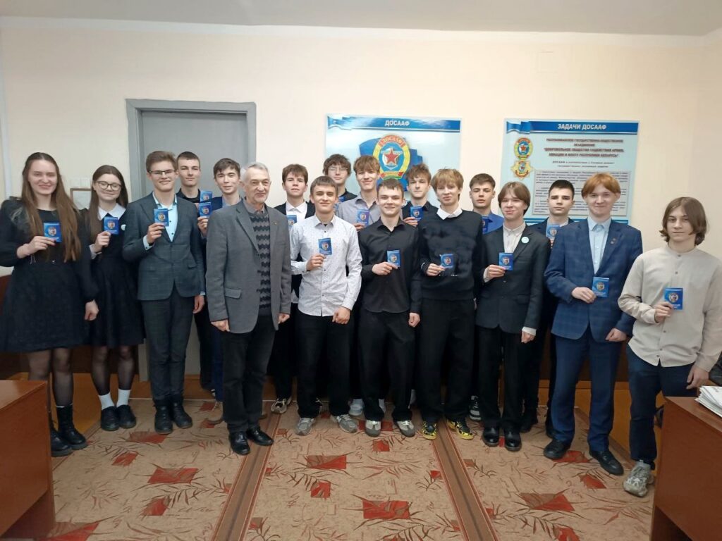 В завершении мероприятия состоялось торжественное вручение членских билетов ребятам, изъявившим желание вступить в Республиканское государственно–общественное объединение «Добровольное общество содействия армии, авиации и флоту Республики Беларусь».