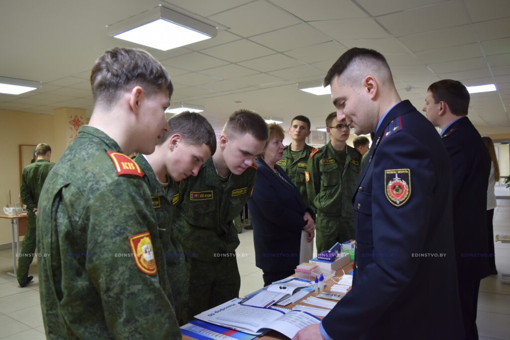 День открытых дверей начался со знакомства. В актовом зале учреждения кадетов встретили сотрудники комитета по Минской области и Борисовскому району. С приветственным словом к учащимся обратился заместитель начальника управления Государственного комитета судебных экспертиз по Минской области Владимир Гипчик.