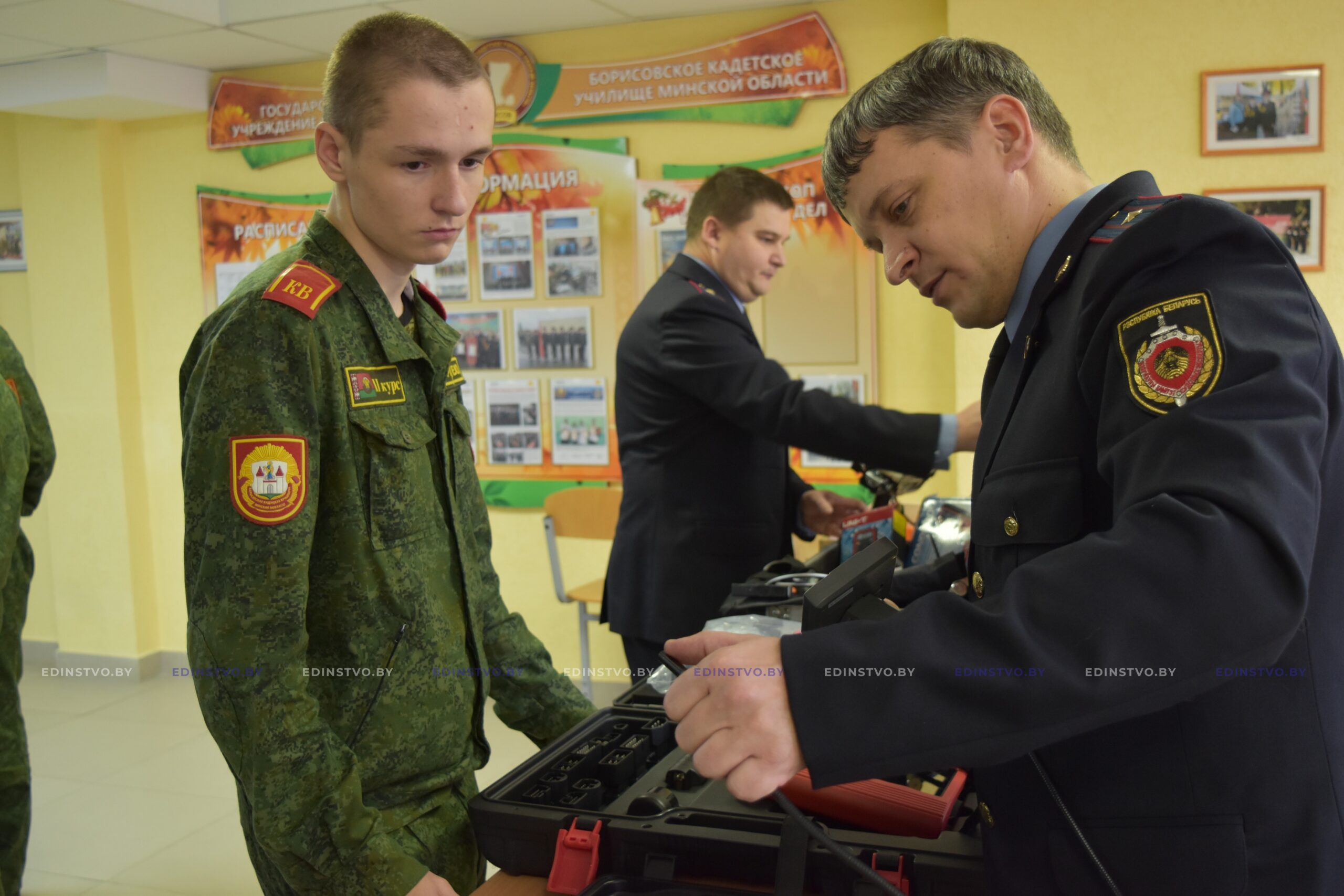 День открытых дверей начался со знакомства. В актовом зале учреждения кадетов встретили сотрудники комитета по Минской области и Борисовскому району. С приветственным словом к учащимся обратился заместитель начальника управления Государственного комитета судебных экспертиз по Минской области Владимир Гипчик.