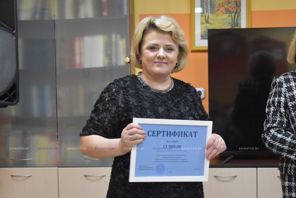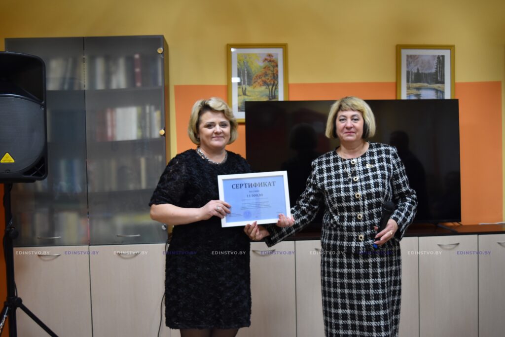 Мероприятие продолжилось церемонией награждения. Благодарностью Борисовского районного Совета депутатов были награждены заместитель директора Светлана Захавай, санитарка Олеся Курилович.