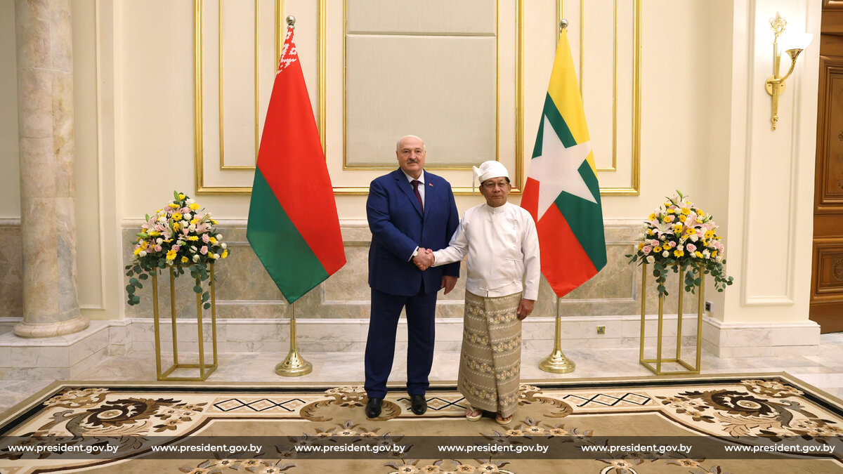 Официальным переговорам Александра Лукашенко и Мин Аун Хлайна предшествовала торжественная встреча с участием роты почетного караула и исполнением гимнов Беларуси и Мьянмы. Затем состоялась церемония совместного фотографирования. Глава белорусского государства также оставил запись в Книге почетных гостей.
