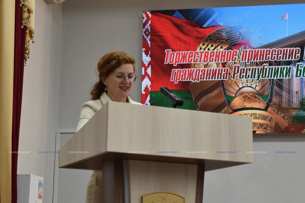 Добровольно и осознанно приобретая гражданство Республики Беларусь, участники мероприятия торжественно поклялись соблюдать и уважать Конституцию Республики Беларусь и иные акты законодательства, защищать независимость, суверенитет и территориальную целостность Беларуси, быть патриотами страны, уважать ее государственные символы, духовные, исторические и национальные традиции, сохранять историческую память о героическом прошлом белорусского народа, уважать достоинство, права, свободы и законные интересы других лиц.