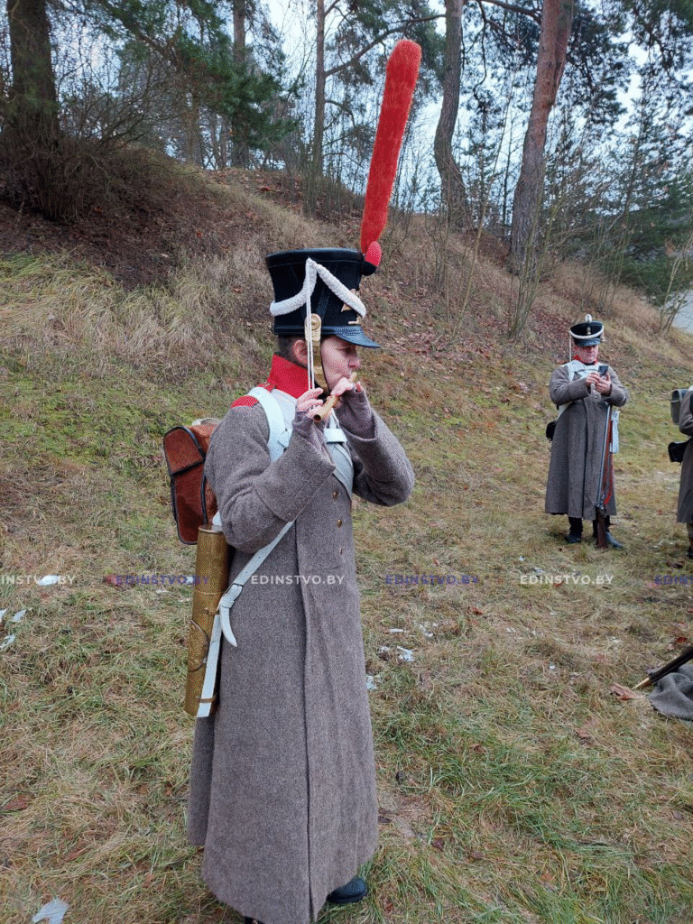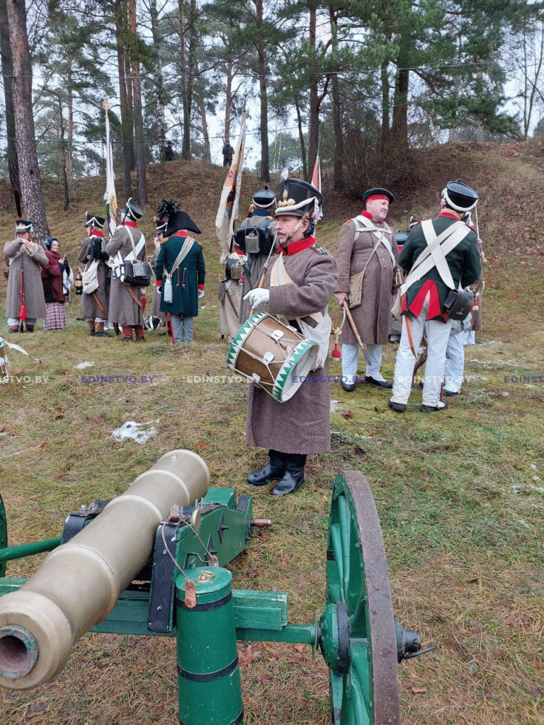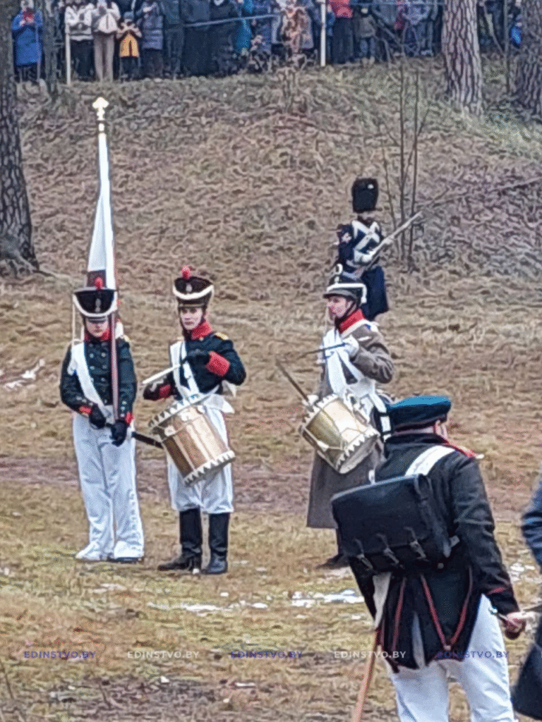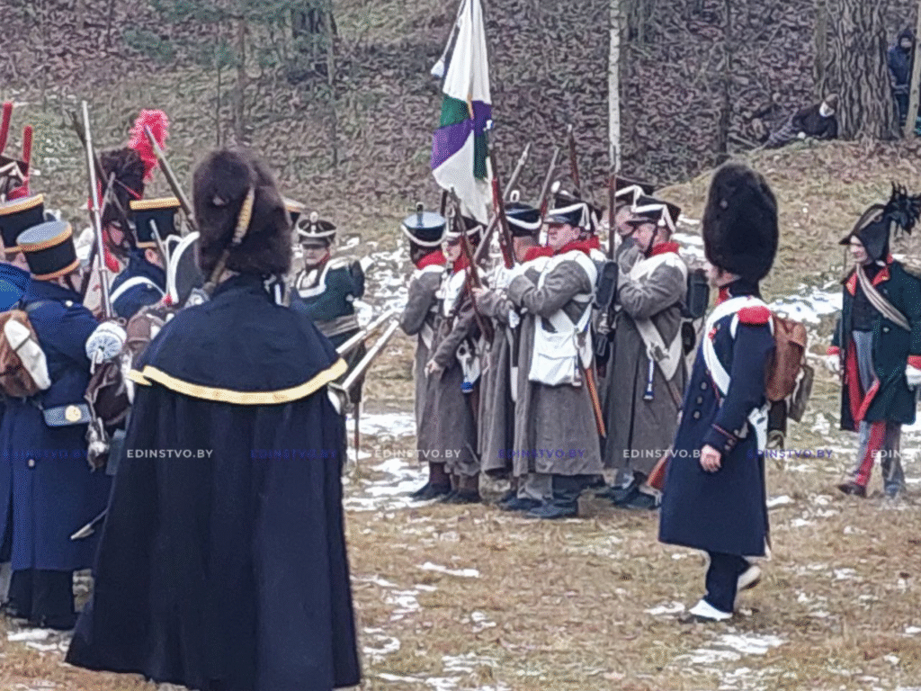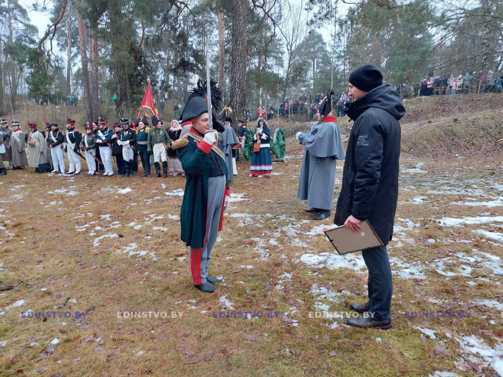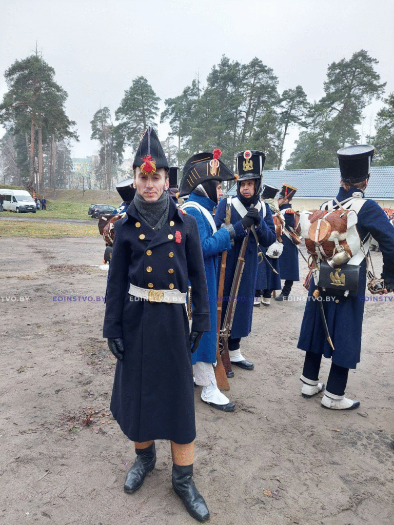 Наполеоновскими войсками в сегодняшней реконструкции командовал Дмитрий Раков, представляющий исторический клуб из Минска «Фузелеры-гренадеры Императорской Гвардии».