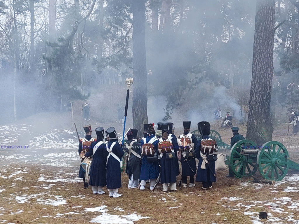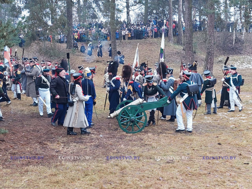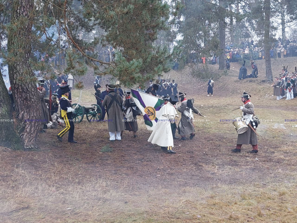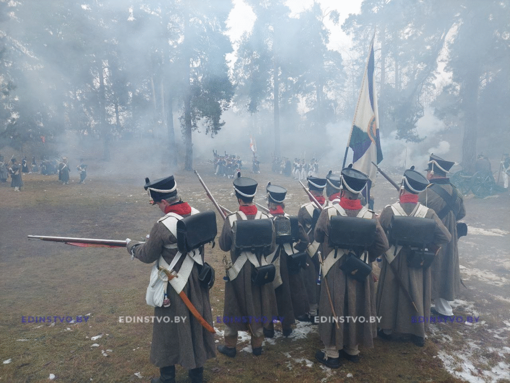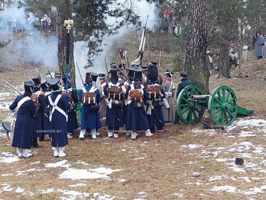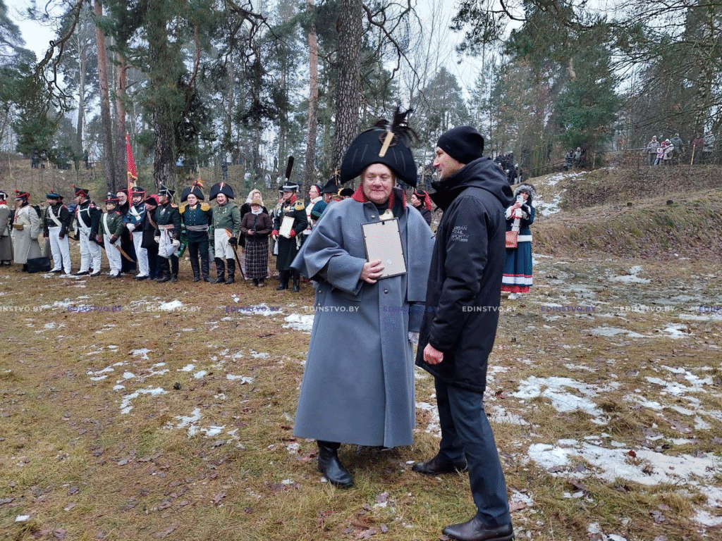 Наполеоновскими войсками в сегодняшней реконструкции командовал Дмитрий Раков, представляющий исторический клуб из Минска «Фузелеры-гренадеры Императорской Гвардии».