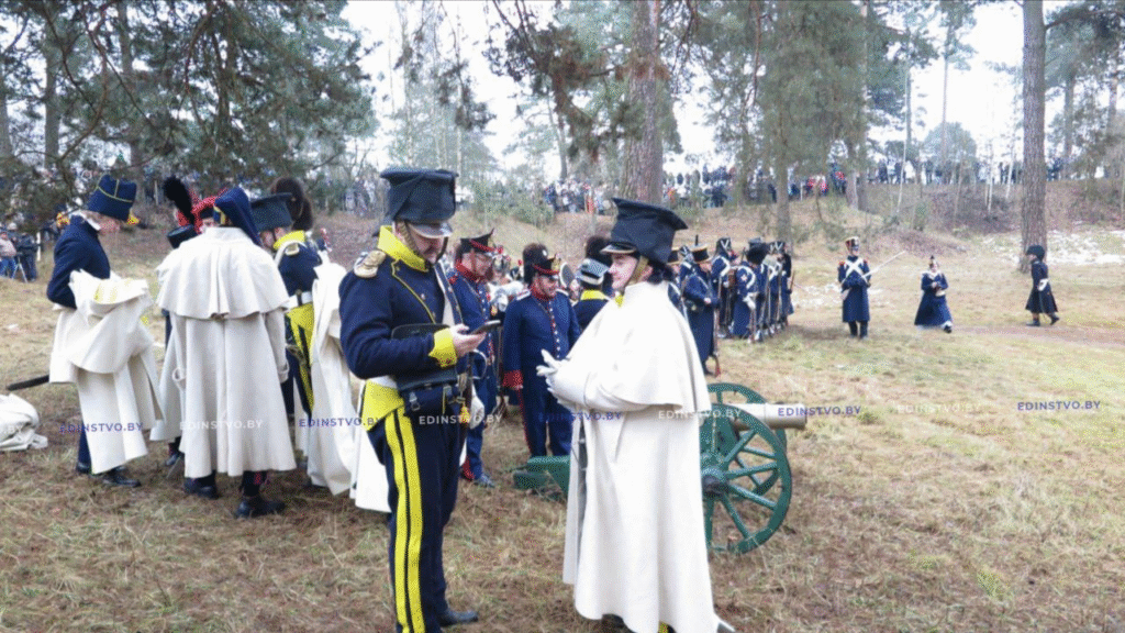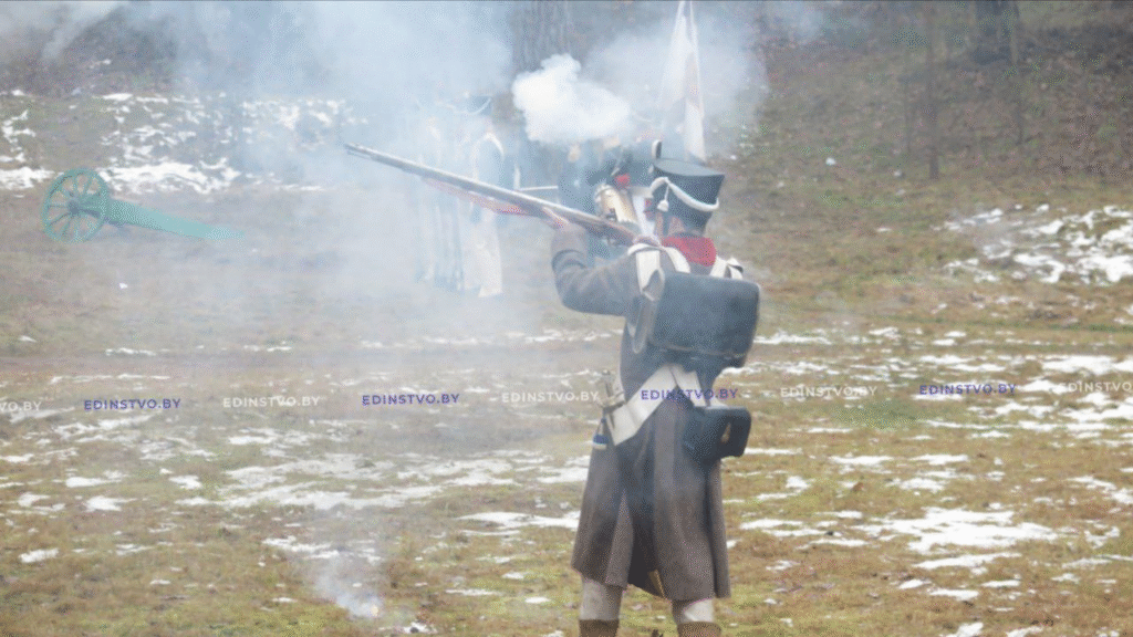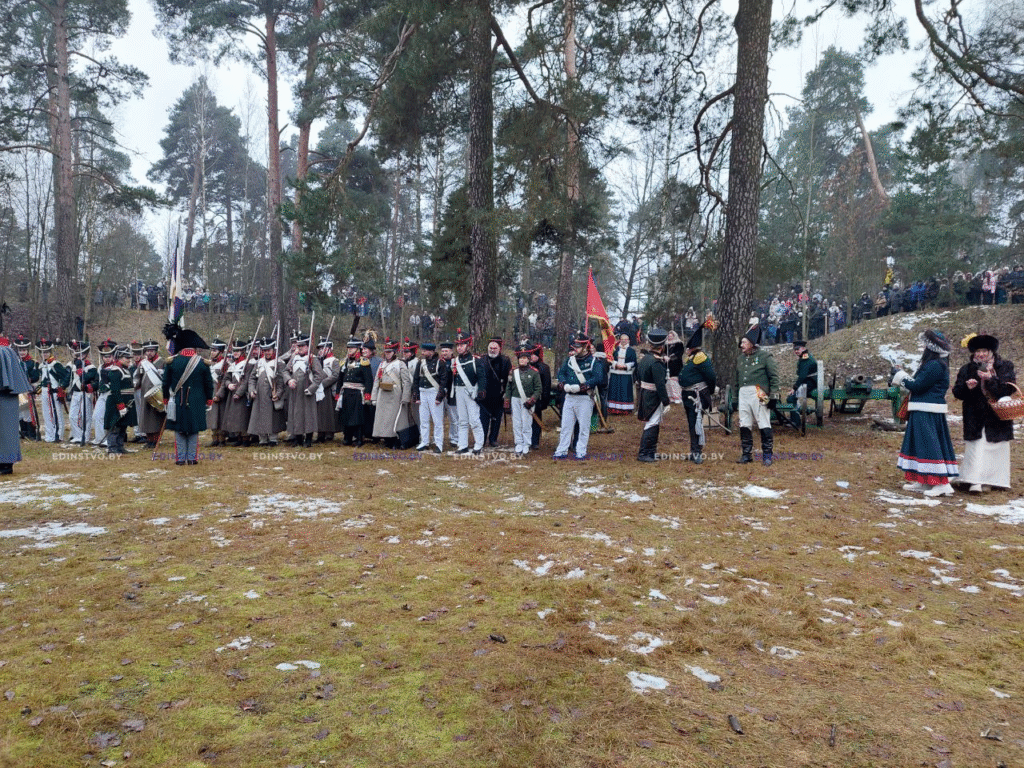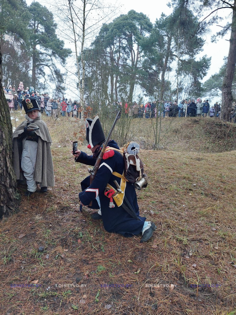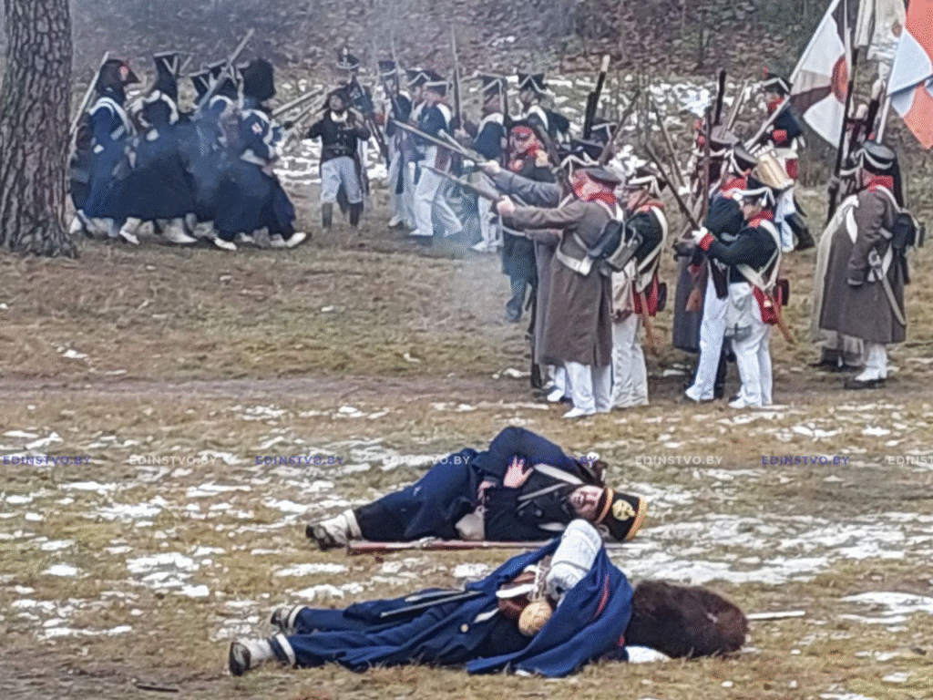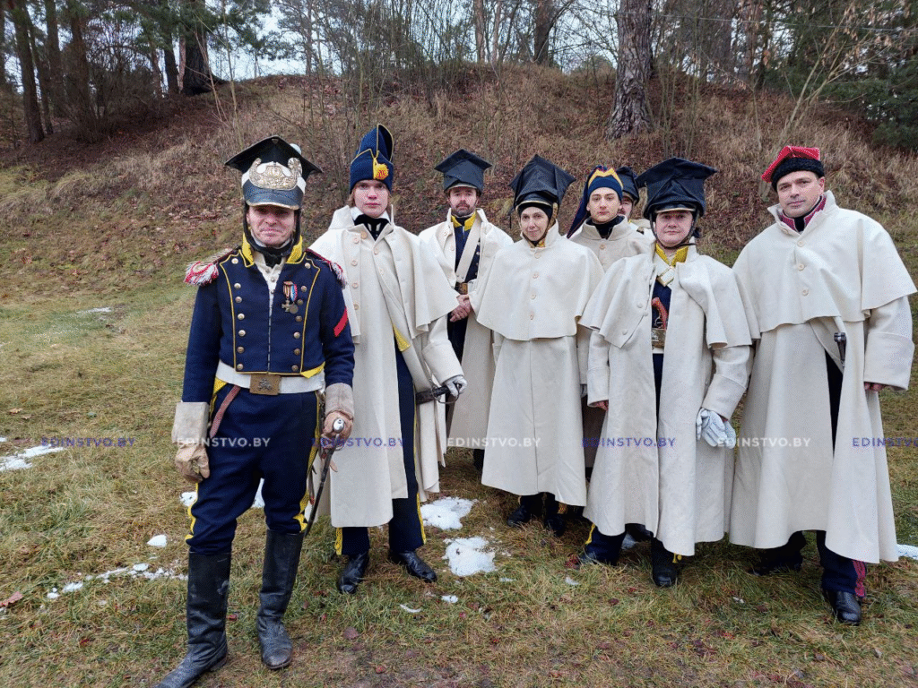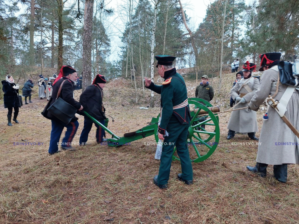 Наполеоновскими войсками в сегодняшней реконструкции командовал Дмитрий Раков, представляющий исторический клуб из Минска «Фузелеры-гренадеры Императорской Гвардии».