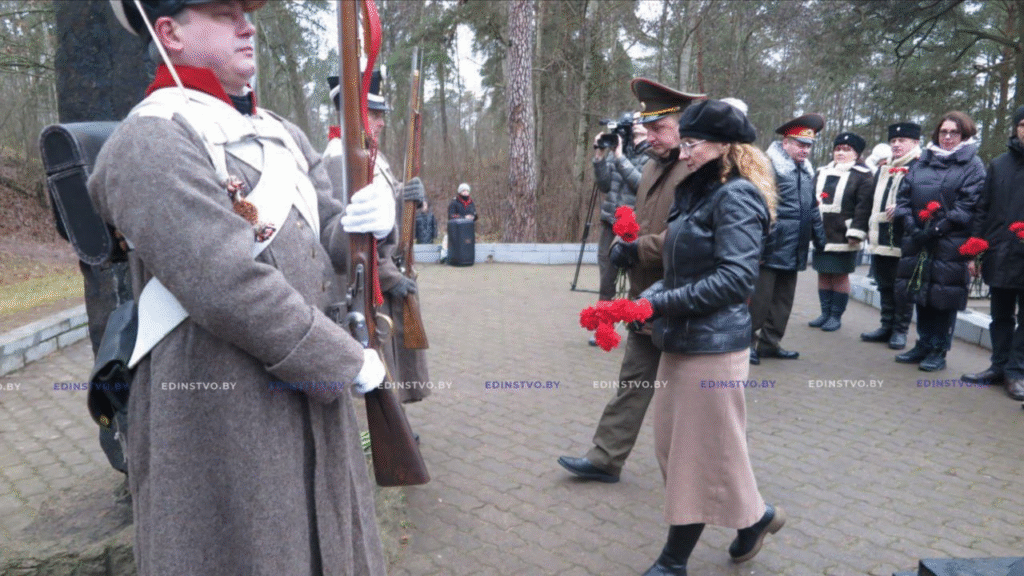 Сегодня в мемориальном комплексе «Брилевское поле» состоялась церемония возложения цветов, а чуть позже красные гвоздики легли к подножию памятного знака, установленного в 1985 году на смотровой площадке остатков земляных фортификационных сооружений «Батарея». В возложении приняли участие заместитель председателя Борисовского райисполкома Егор Мандрик, депутат Палаты представителей Национального собрания Республики Беларусь по Борисовскому городскому избирательному округу №62, заместитель председателя Постоянной комиссии по здравоохранению, физической культуре, семейной и молодежной политике Александр Шипуло, начальник отдела идеологической работы и по делам молодежи райисполкома Татьяна Чуйкова, командующий войсками СЗОК Александр Бас и представители клубов военно-исторической реконструкции.