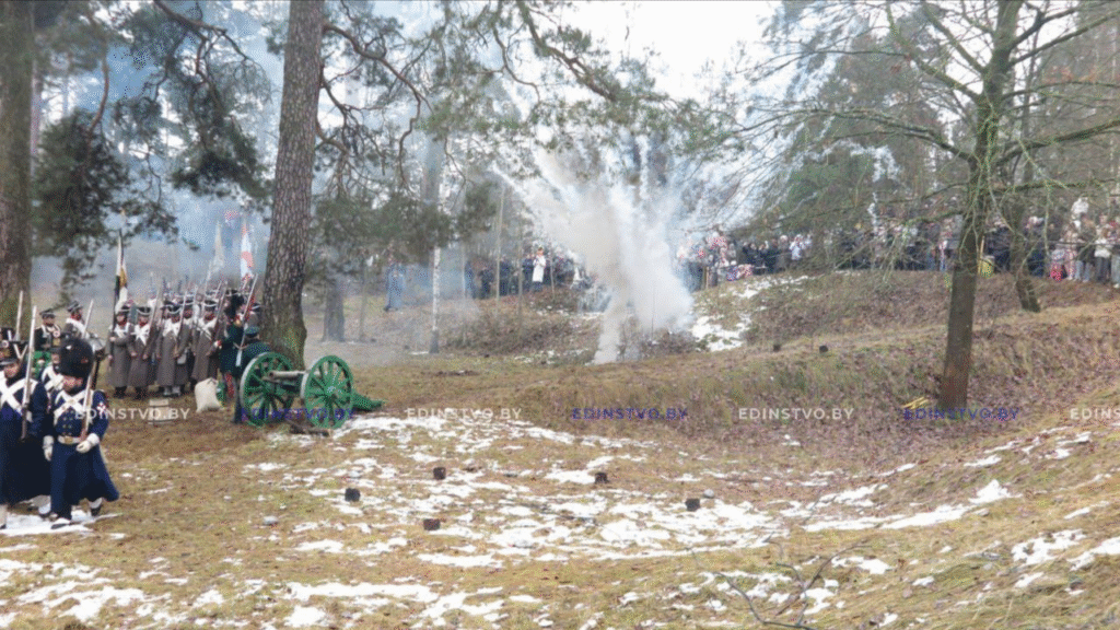 В 1811 году на правом берегу Березины перед мостом, на пути в Борисов началось строительство земляных укреплений с целью обороны города от возможного нашествия врага. Там планировалось установить артиллерийские батареи. Но до вторжения в Российскую империю армии Наполеона строительство фортификационных сооружений не было завершено. Однако земляные укрепления были использованы во время контрнаступления русских войск. Сегодня в этом историческом месте прошла реконструкция боя, состоявшегося здесь 21 октября 1812 года. Окунулись в атмосферу происходящего.