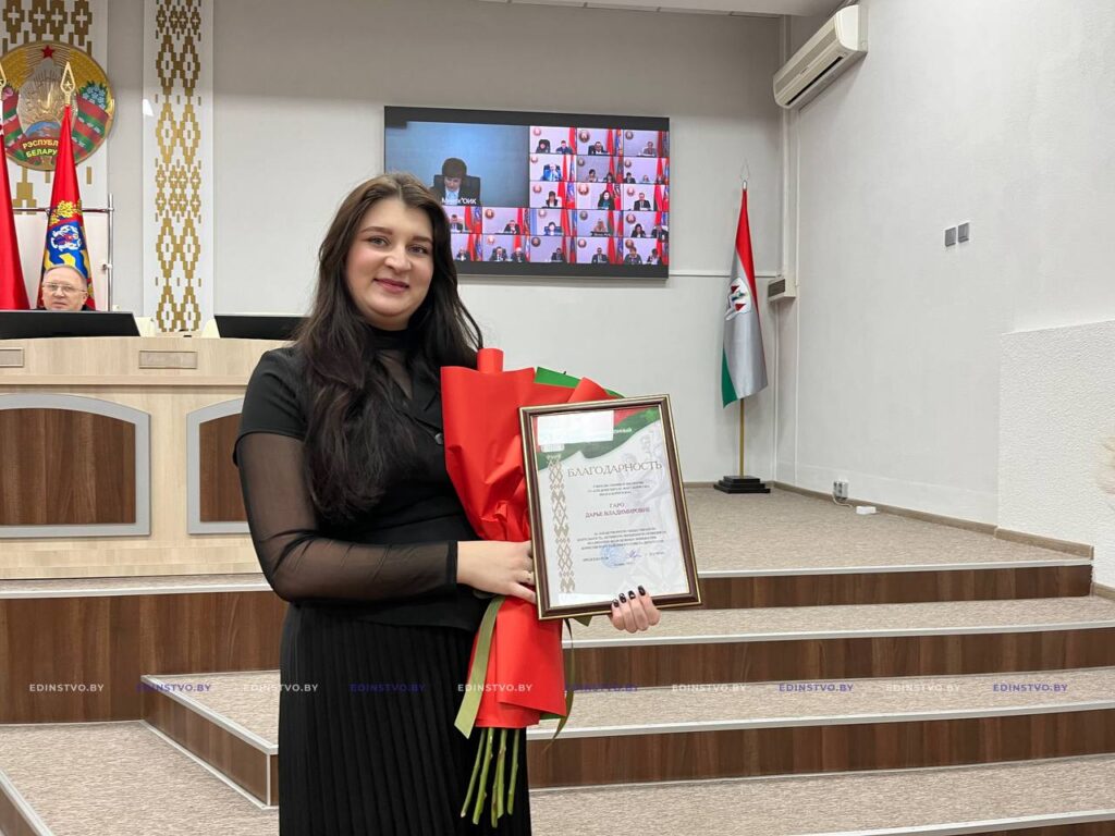 В начале заседания была отмечена работа предыдущего председателя Молодежного совета – Дарьи Гаро. Ей вручили Благодарность Борисовского районного Совета депутатов за плодотворную общественную деятельность, активную жизненную позицию в реализации молодежных инициатив Борисовского районного Совета депутатов.