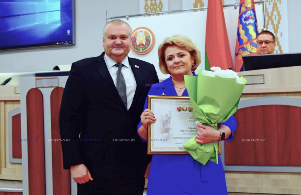 Вера Дивина, директор социального учреждения, была награждена Почетной грамотой Борисовского районного исполнительного комитета за многолетнюю добросовестную работу и значительный вклад в развитие социальных услуг в связи с 10-летием пансионата.