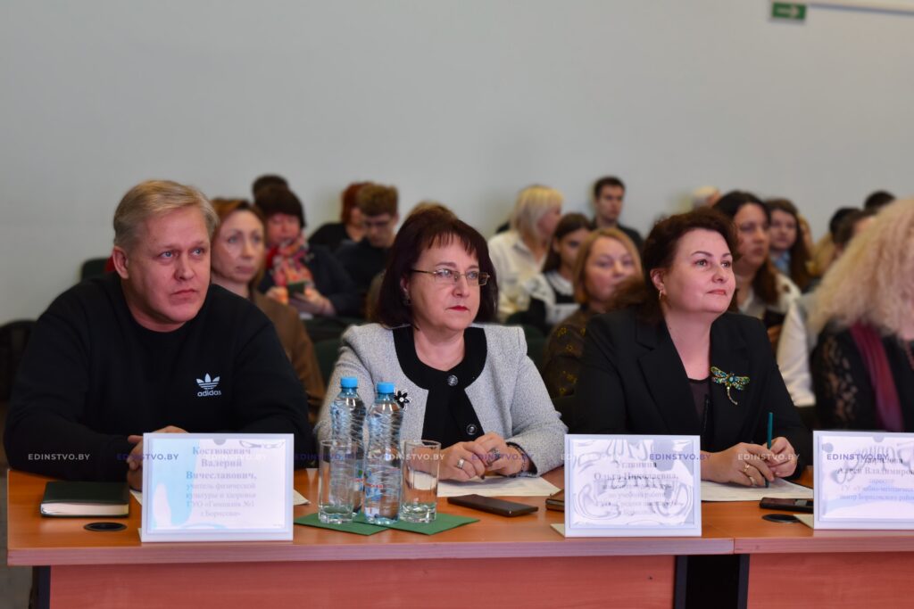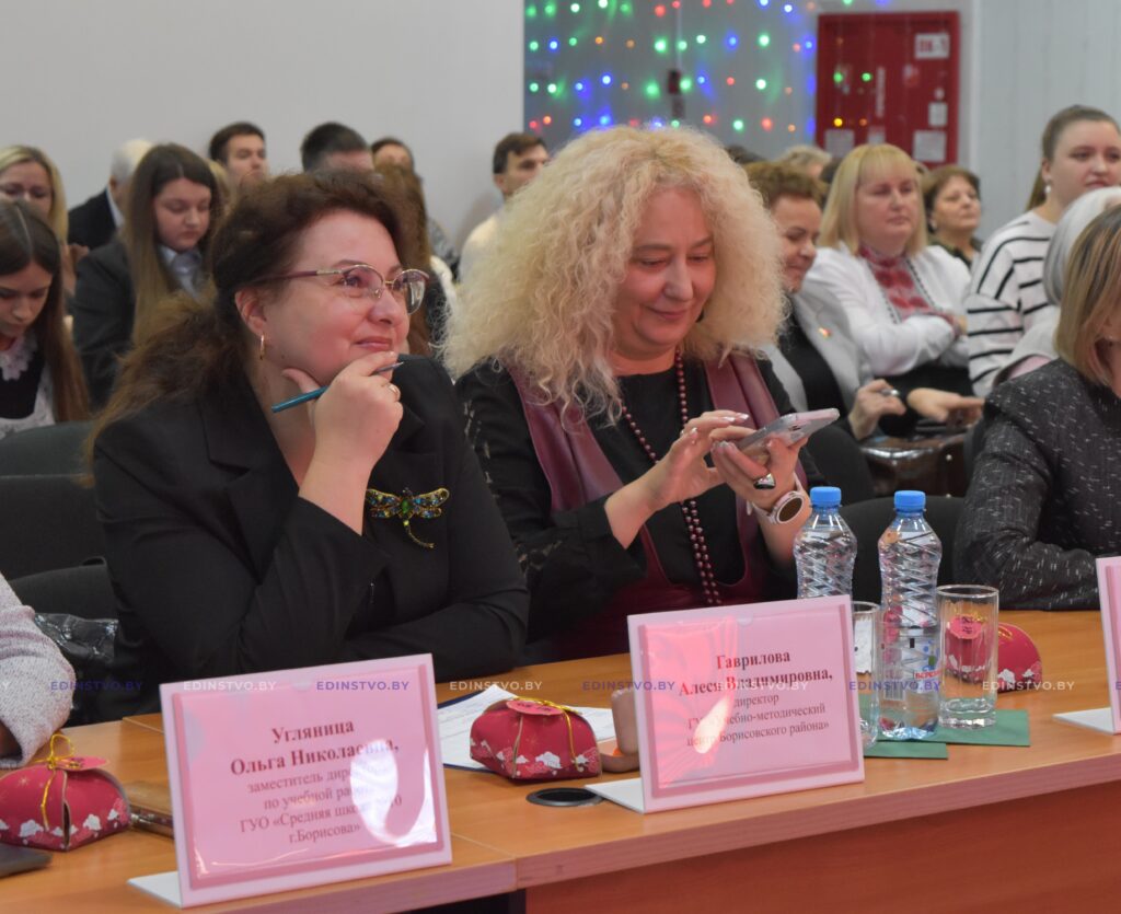 Оценивало выступления конкурсантов строгое, но справедливое профессиональное жюри – начальник управления по образованию Борисовского райисполкома Ирина Садовская, председатель Борисовской районной организации Белорусского профсоюза работников образования и науки Наталья Гринь, директор учебно-методического центра Борисовского района Алеся Гаврилова, заместитель директора средней школы №10 г. Борисова Ольга Угляница, заместитель директора по учебной работе белорусскоязычной гимназии №2 г. Борисова Ольга Афонская, заместитель директора по учебной работе средней школы №23 г. Борисова Татьяна Орловская, заместитель директора по учебной работе средней школы №12 г. Борисова Анастасия Гвоздь, учитель физической культуры и здоровья гимназии №1 г. Борисова Валерий Костюкевич. На мероприятии присутствовала и почетная гостья – старший преподаватель кафедры педагогики и предметных методик Минского областного института развития образования Виктория Шабловская.