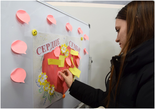 То, что тема задела ребят за живое, показал финал встречи. Ребята приняли участие в создании интерактивного плаката «Сердце семьи». Каждый вписал туда то, что считает самым важным для счастья: кто-то — поддержку, кто-то — детей, а кто-то — умение прощать.