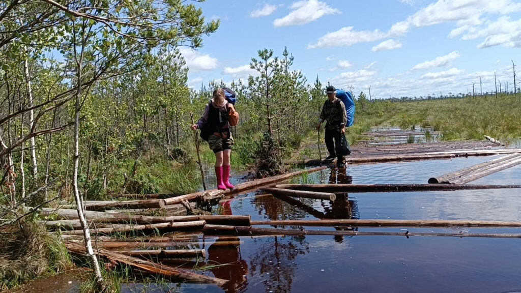 Финальным аккордом стала гать — настил из бревен. Из-за паводка бревна всплыли и «жили своей жизнью»: крутились под ногами, разъезжались. Идти по ним было страшнее, чем по болоту — один неверный шаг грозил переломом или глубоким провалом.