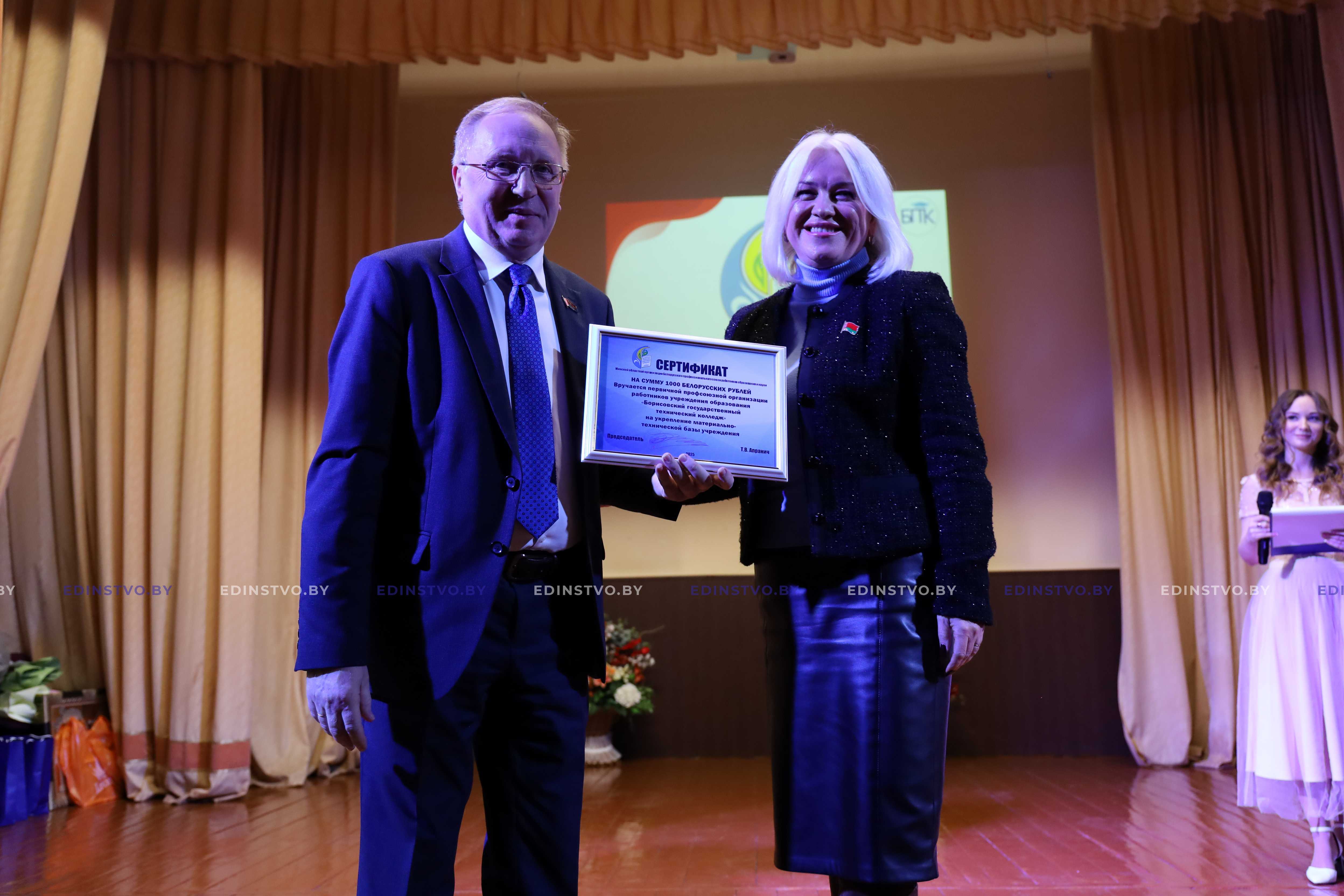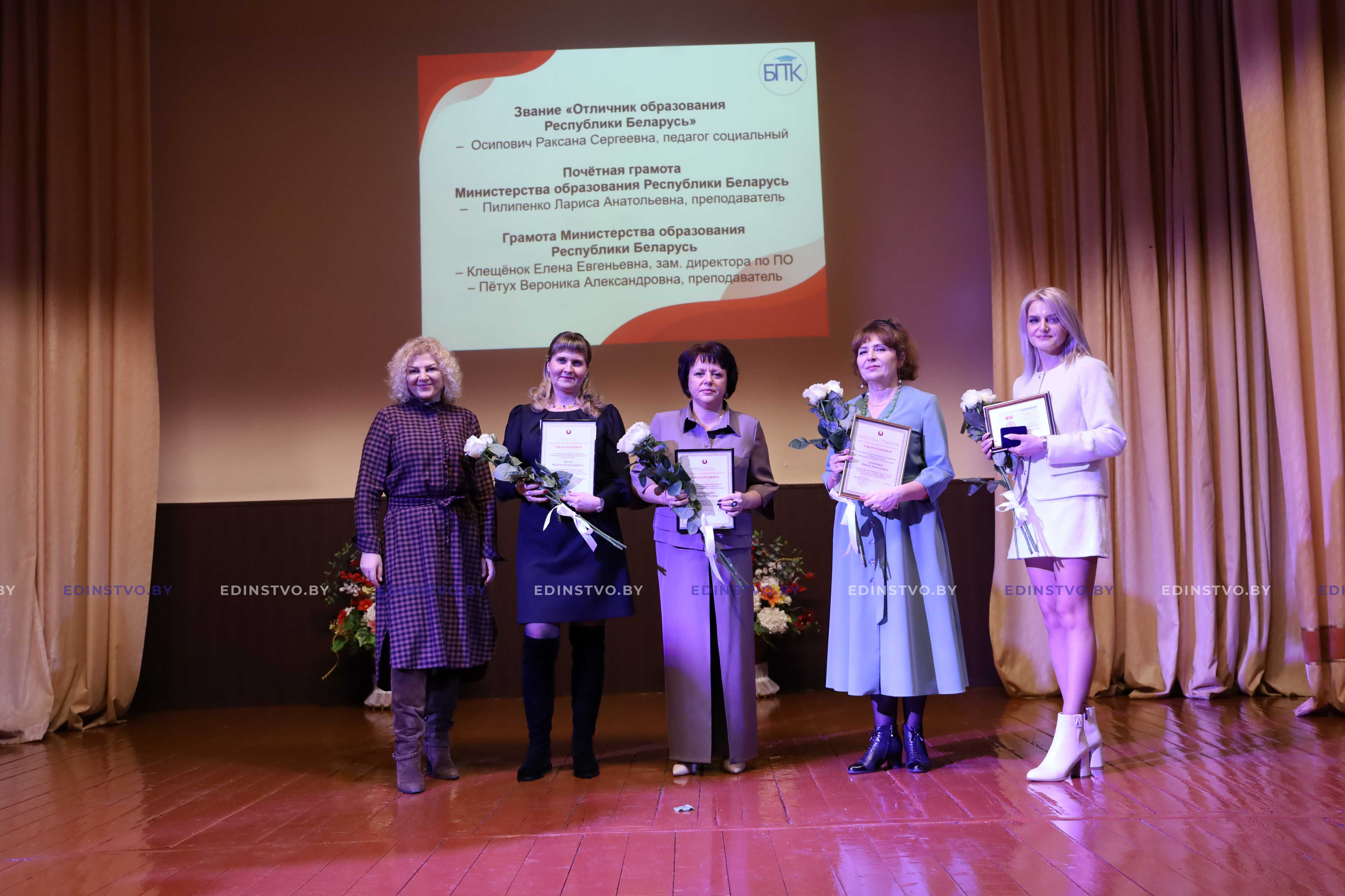 Во всех делах и свершениях учреждение образования всегда находит поддержку, понимание и помощь Министерства образования Республики Беларусь. От его имени Борисовский государственный технической колледж поздравила заместитель начальника главного управления профессионального образования – начальник управления профессионально-технического и среднего специального образования Министерства образования Александра Петрова.