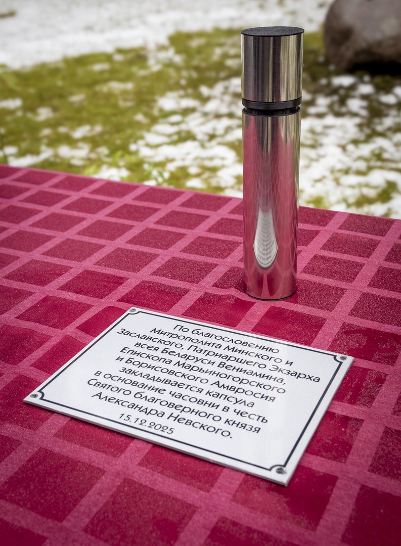 Вчера, 15 декабря 2025 года, на территории УО «Плещеницкое государственное областное училище олимпийского резерва» спортивно-оздоровительный комплекс «Крутой Яр» состоялось торжественное освящение места и закладки капсулы в памятный камень под строительство часовни в честь святого благоверного князя Александра Невского.