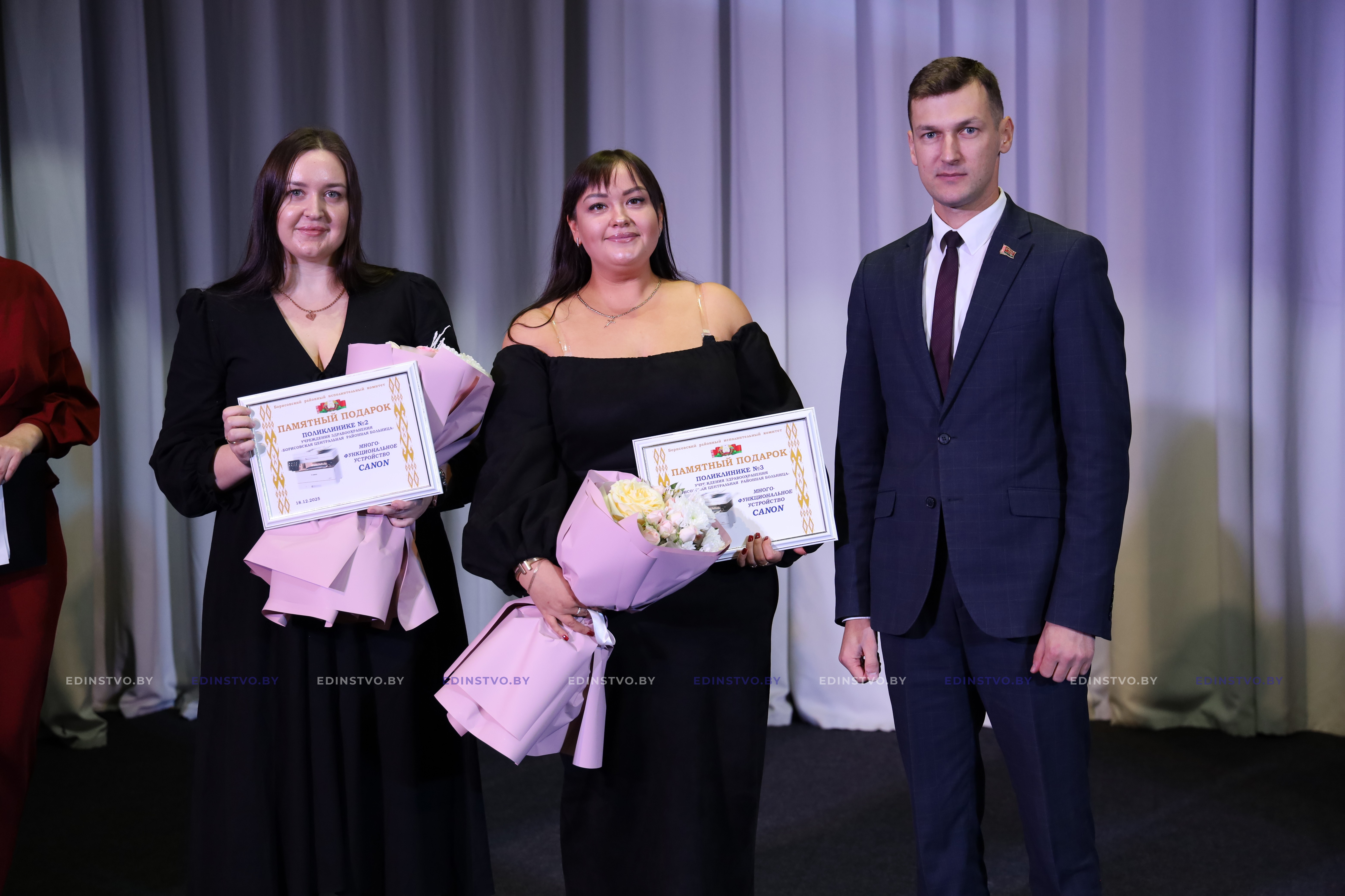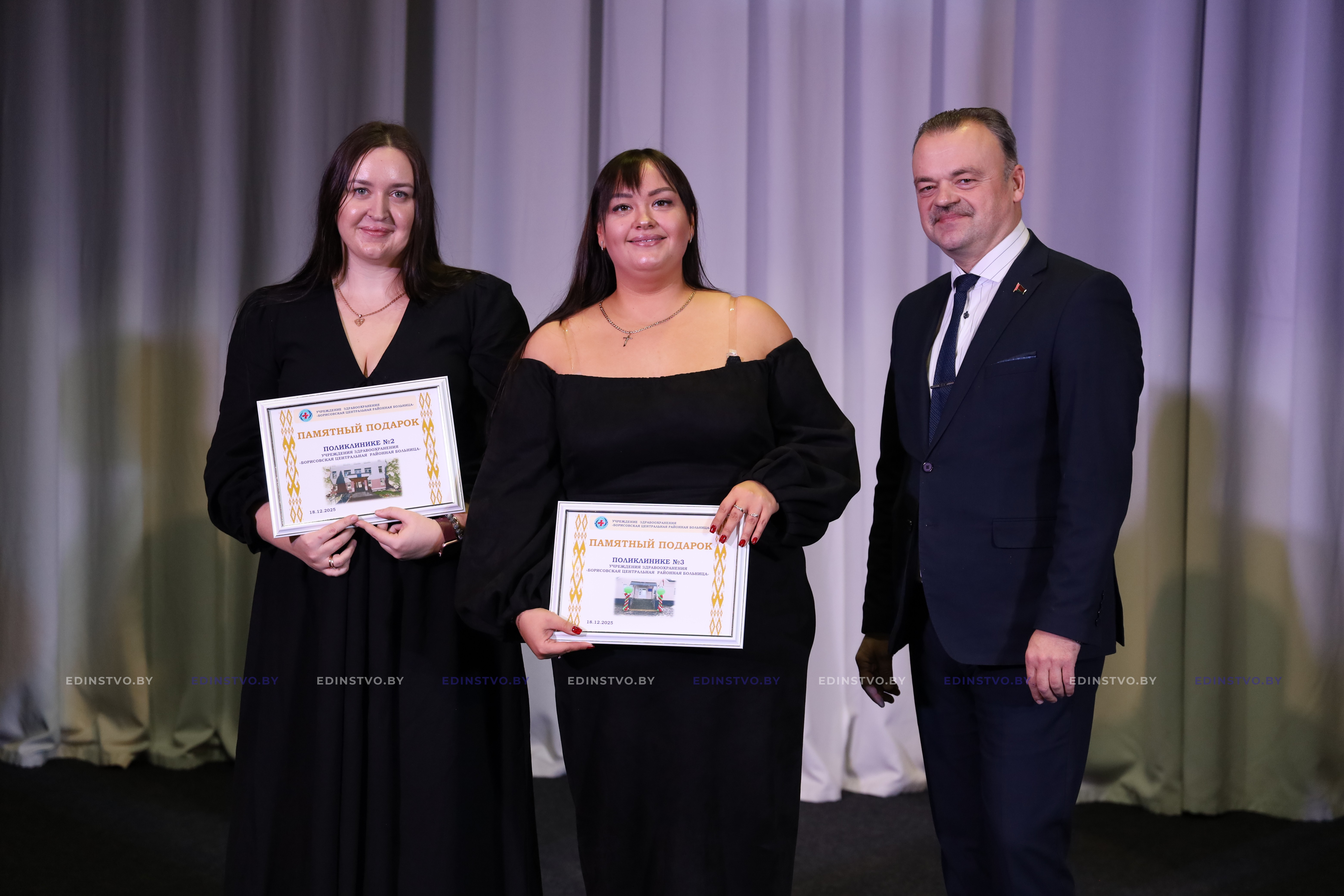 Егор Алексеевич вручил заведующим поликлиник №2 и №3 памятные подарки от Борисовского районного исполнительного комитета.