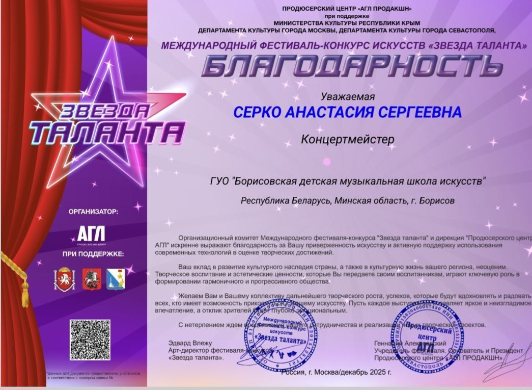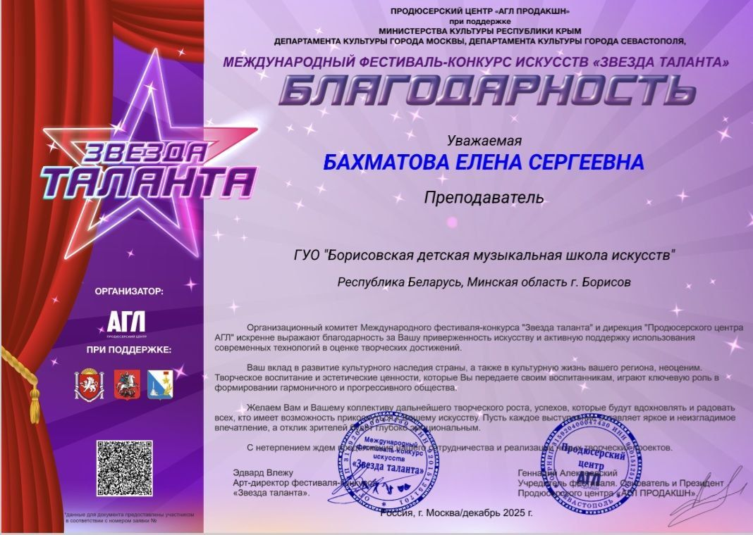 В декабре подведены итоги международного фестиваля-конкурса искусств «Звезда таланта», который прошел в заочном формате.