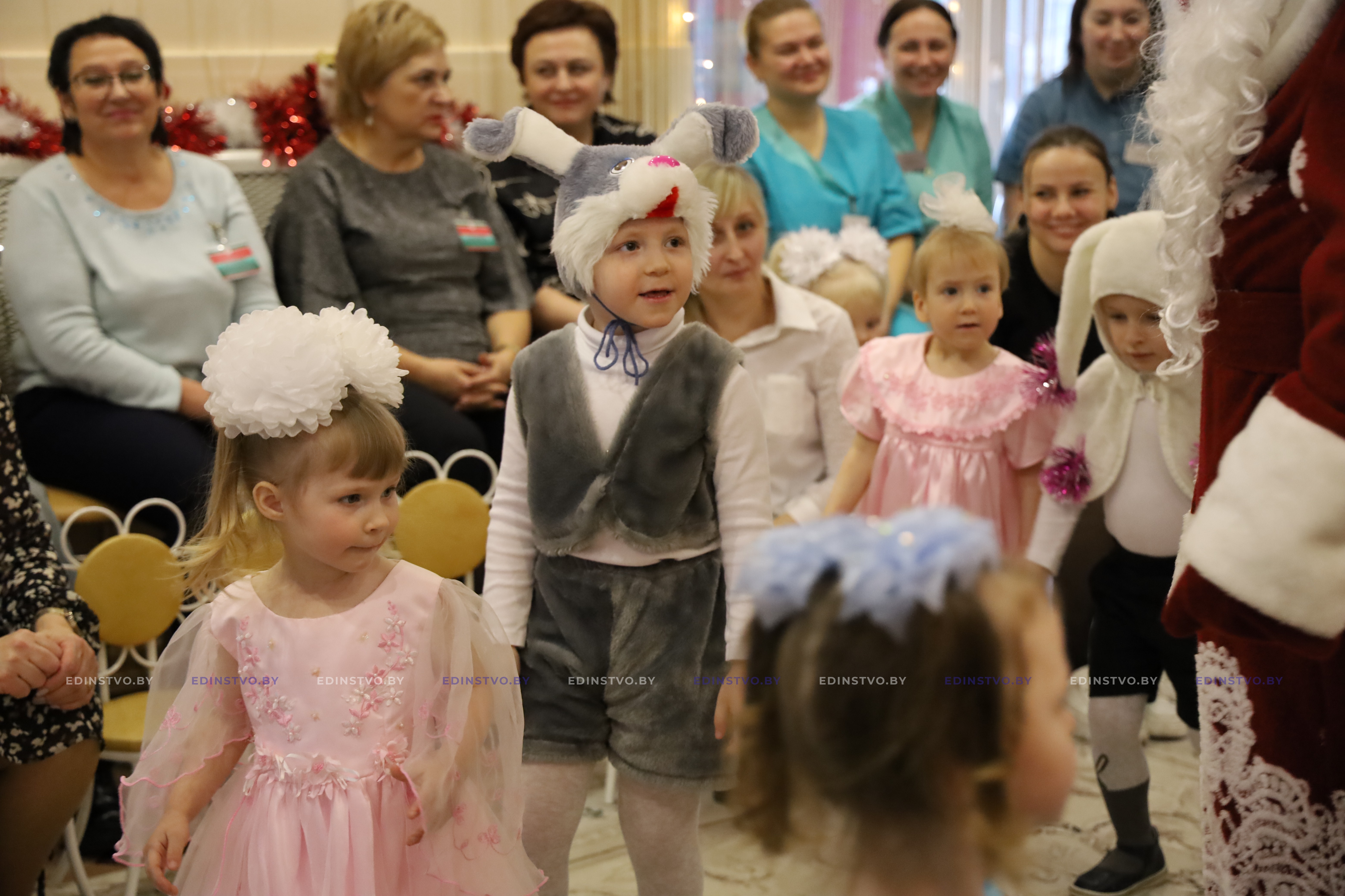 Так и сегодня малыши стали участниками настоящего новогоднего приключения. Под громкие аплодисменты они вошли в зал в образах снежинок, принцесс, фей, гномиков, зайчиков и других сказочных персонажей, с привычным детским любопытством осматривали зал и приветствовали гостей.