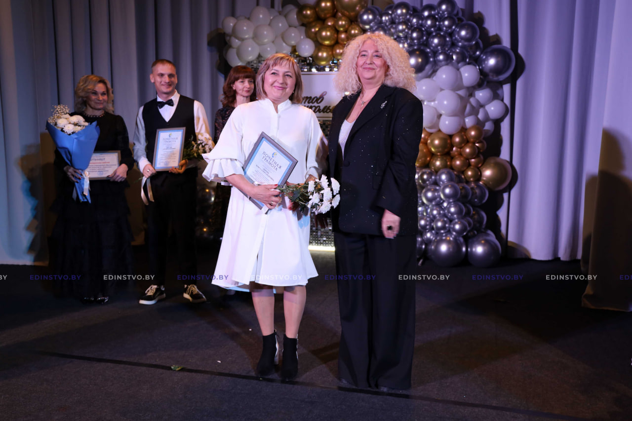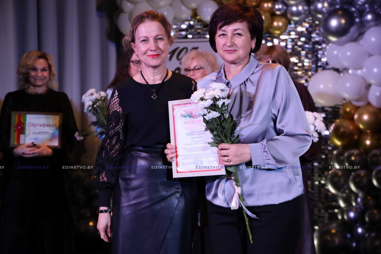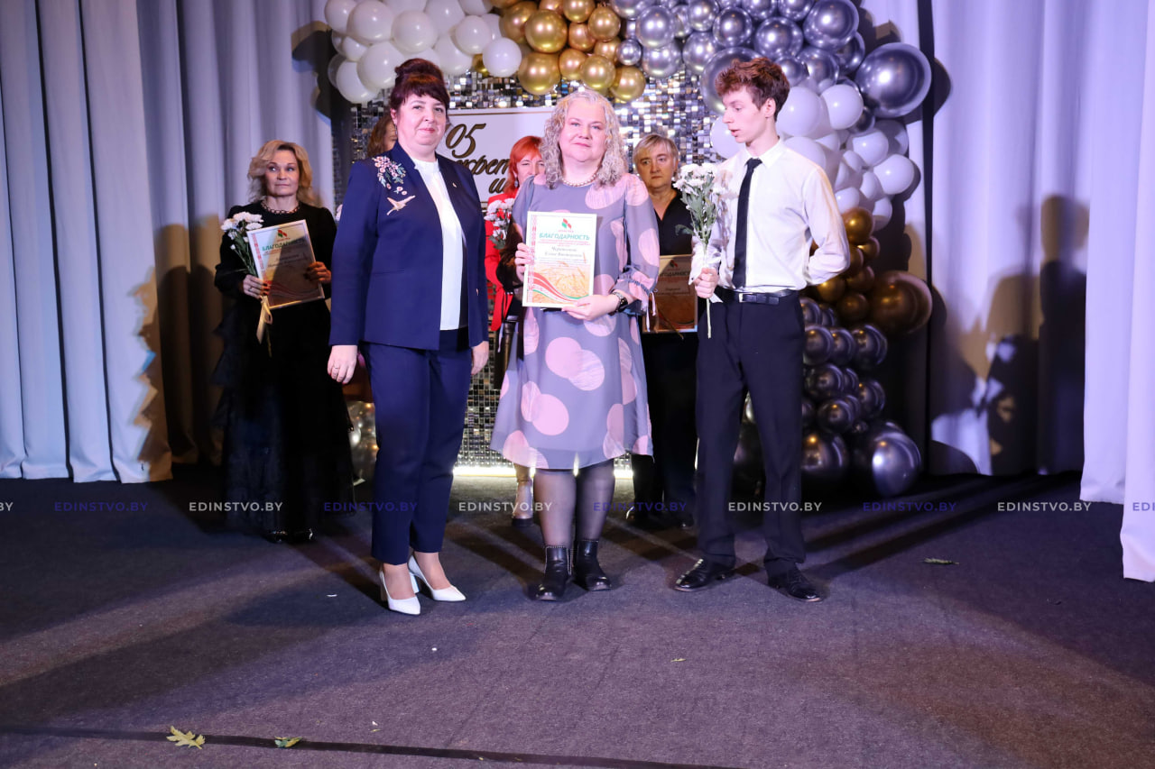 Она вручила Почетную грамоту Борисовского районного Совета депутатов директору школы Наталье Дмитриевой, Благодарности Борисовского районного Совета депутатов за активную гражданскую позицию, многолетний добросовестный труд в системе образования, достигнутые успехи в обучении и воспитании подрастающего поколения и в связи со 105-летним юбилеем школы заместителю директора по учебной работе Виолетте Чернышевой, учителям русского языка и литературы Галине Валуевой и Оксане Шеверновской.