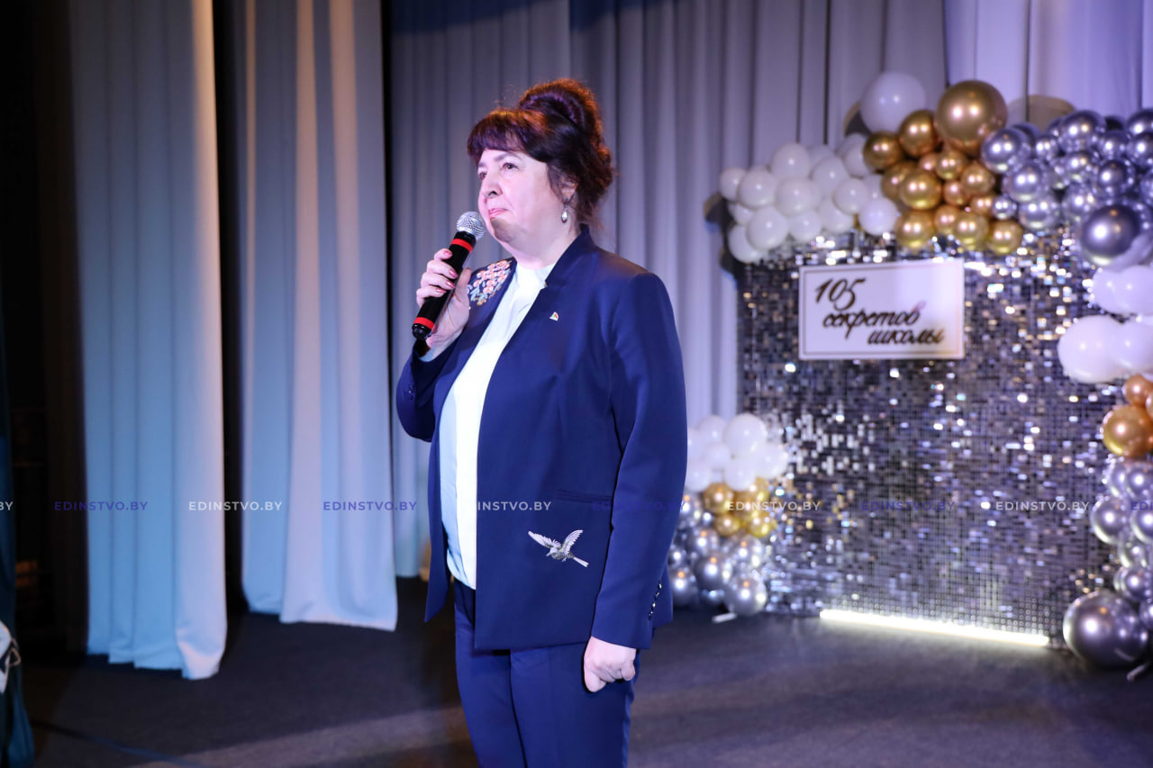 — Что такое 105 лет в истории школы? Это чудесное сплетение традиций, знаний, умений, судеб педагогов, детей и родителей, успехов и маленьких неудач. И вот это сплетение — это фундамент, который сегодня мы с вами видим на сцене: этих чудесных детей, педагогов, прекрасного директора. Средняя школа №8 — это та школа, на которую можно опереться и положиться не только в трудную, но и в радостную минуту. Сегодня я хочу пожелать, чтобы поколение, которое сейчас входит в стены школы, и поколение педагогов, и поколение детей, вплело в эту историю свои золотые нити — нити школы, нити судьбы страны, и в будущем любые юбилеи и важные даты школы были еще одной звездочкой в истории, — сказала начальник управления по образованию райисполкома Ирина Садовская.