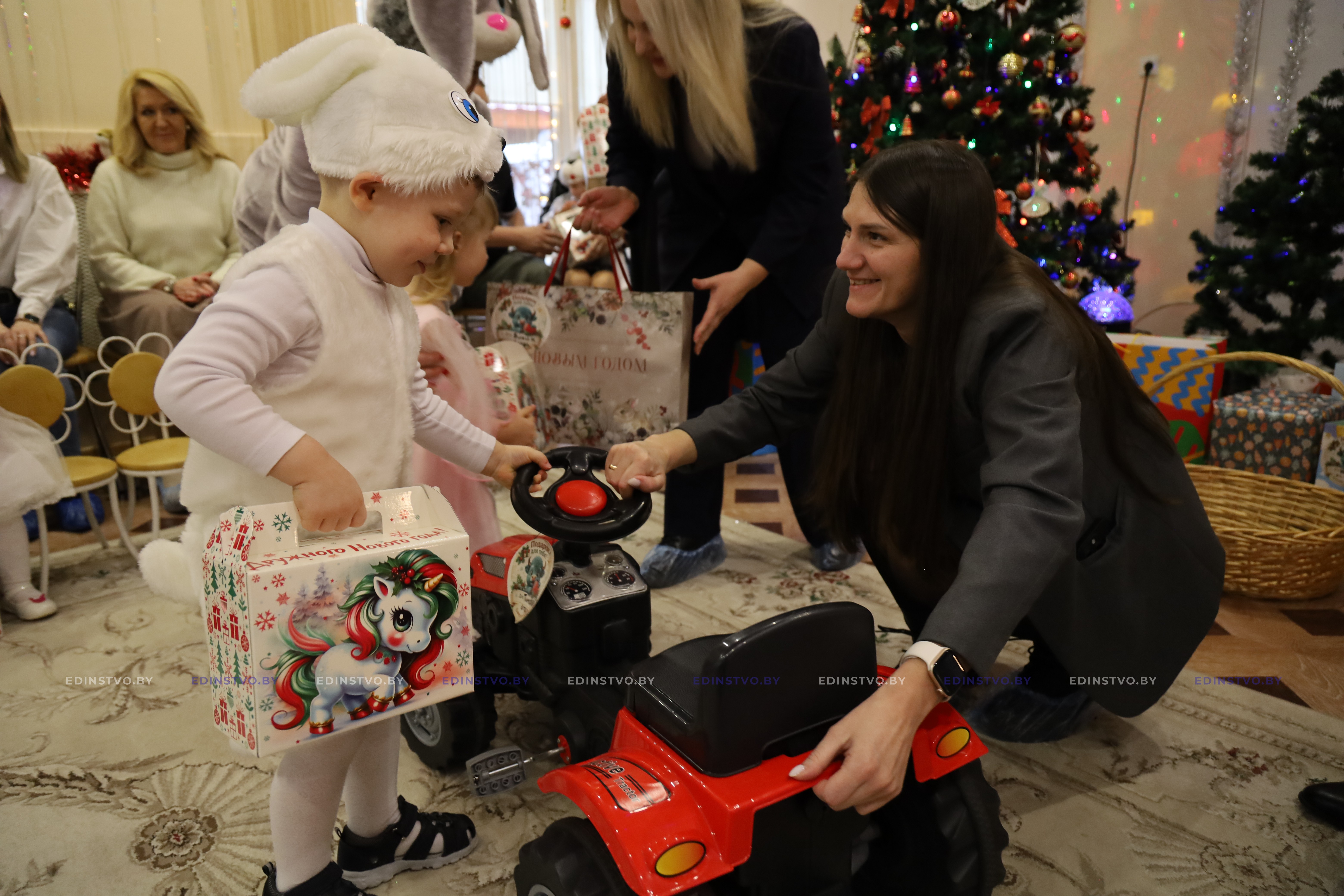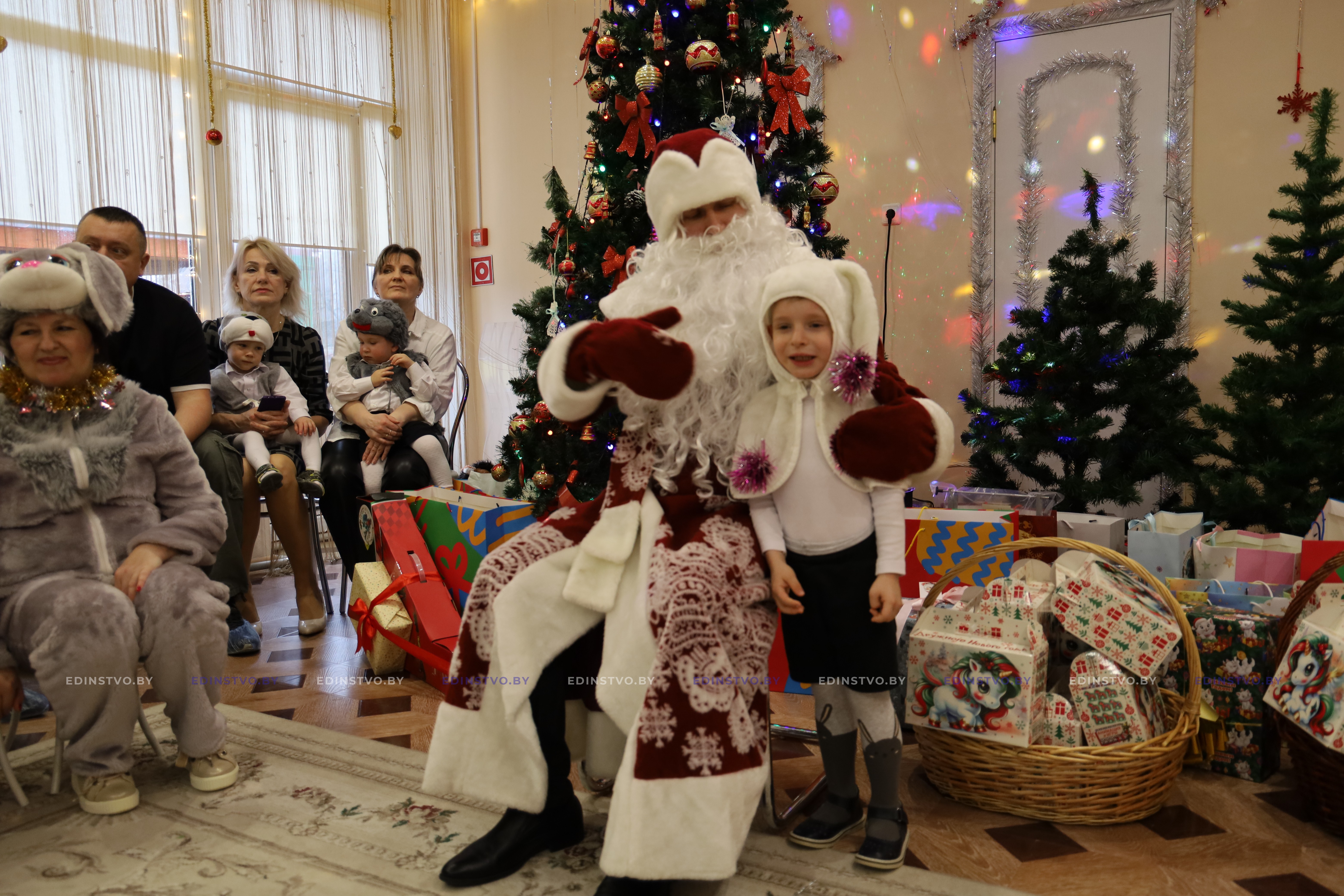 — Сегодня на праздник мы пришли с чувством радости и ответственности за наше будущее поколение, — поделился депутат Борисовского районного совета депутатов, член РОО «Патриоты Беларуси» Константин Константинов. — Чтобы ребятам этот день запомнился, мы принесли подарки, которые они просили у Деда Мороза. Пусть эти игрушки принесут им радость и сделают жизнь краше. Думаю, наше сотрудничество с домом ребенка будет только укрепляться.