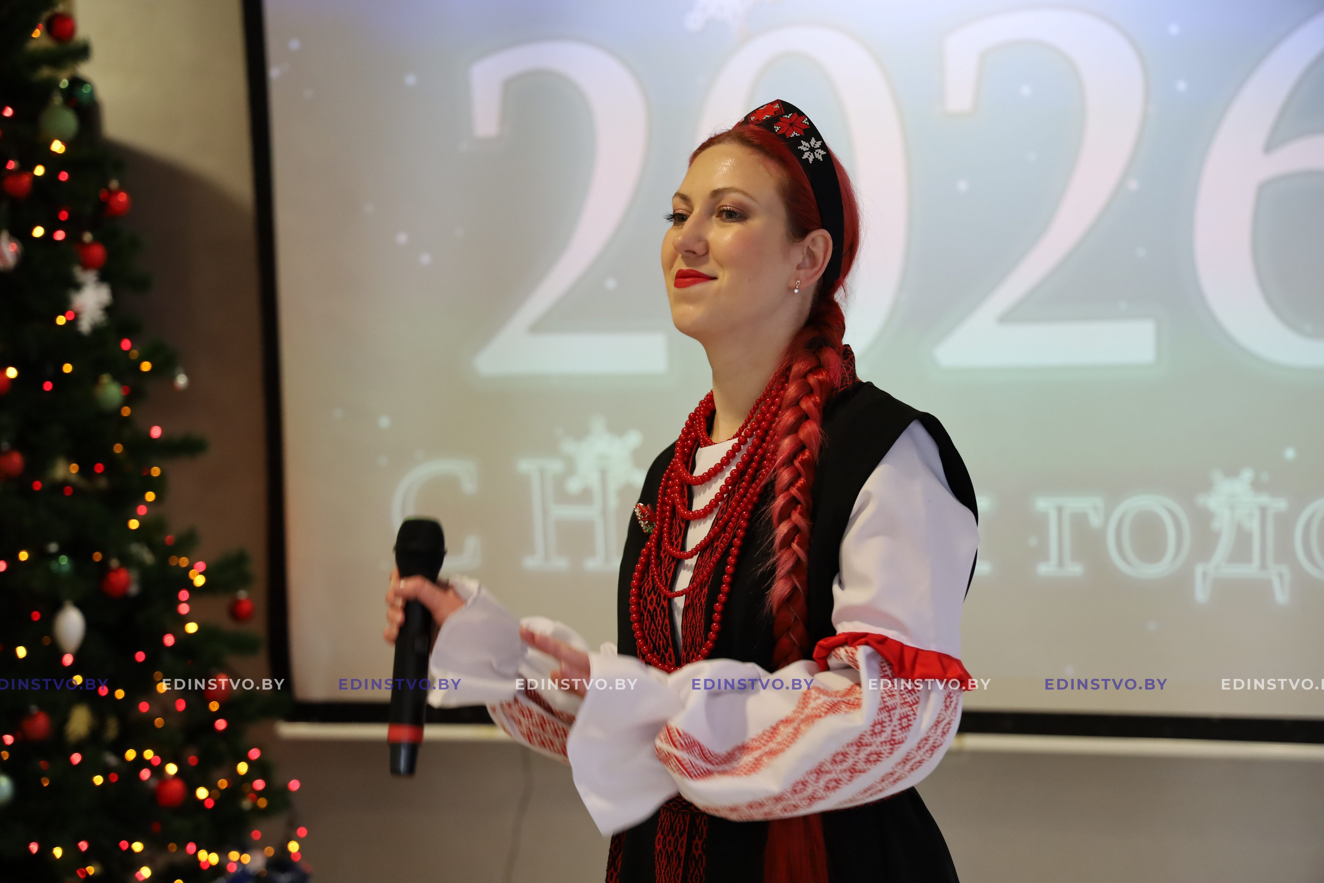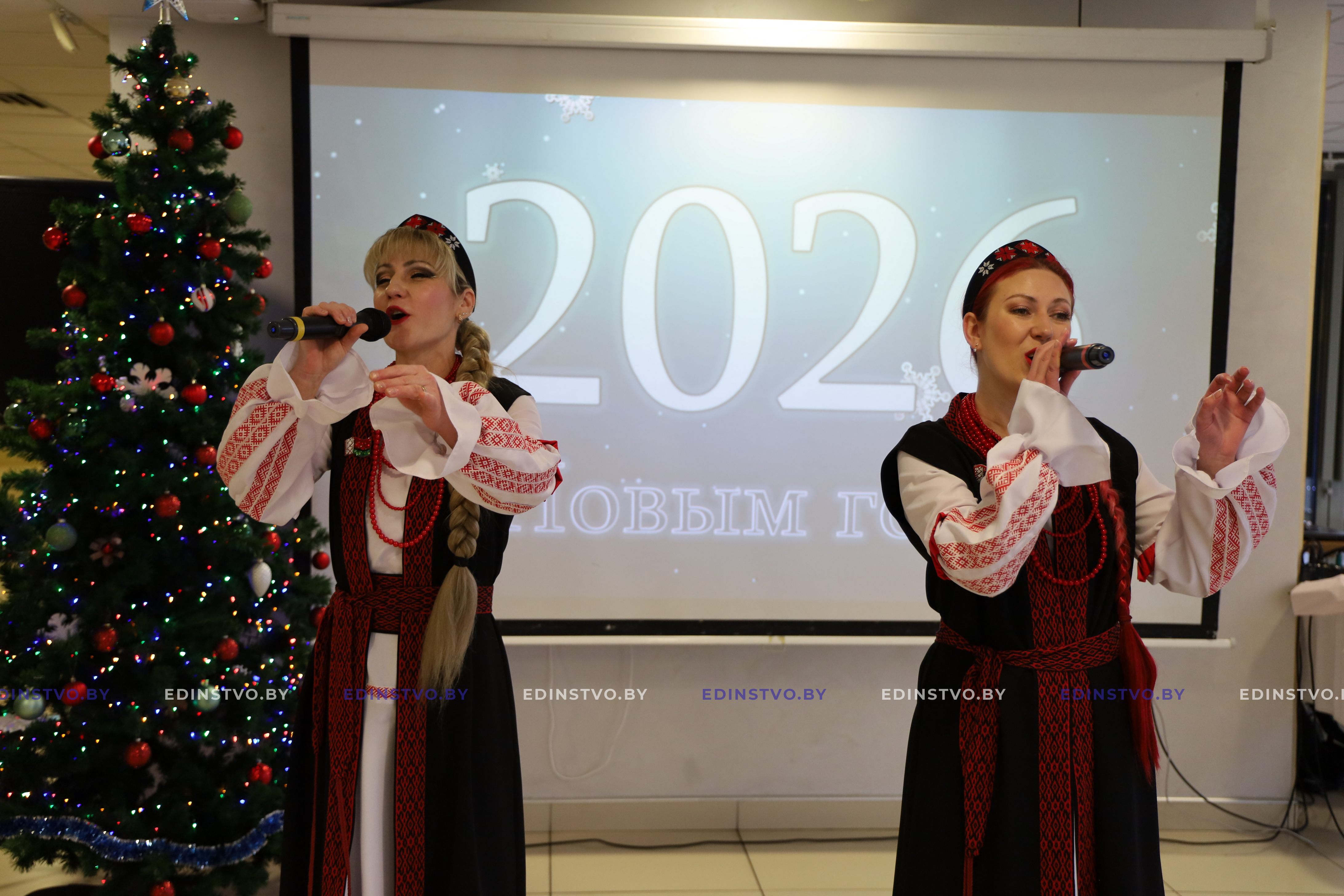 Поздравить присутствовавших с наступающими праздниками пришли также солистки поп-фолк-группы «Дарэчы-шоу».