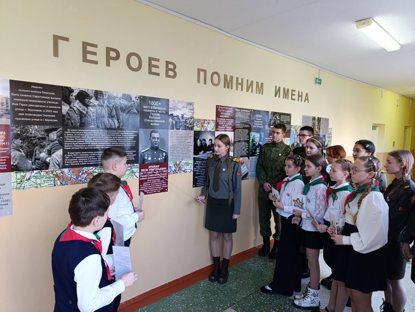 В рамках фестиваля гражданско-патриотических инициатив «Патриотизм не словом, а делом!», с целью сохранения исторической памяти и популяризации историко-культурного наследия Республики Беларусь в средней школе №16 создана стендовая экспозиция «Героев помним имена».