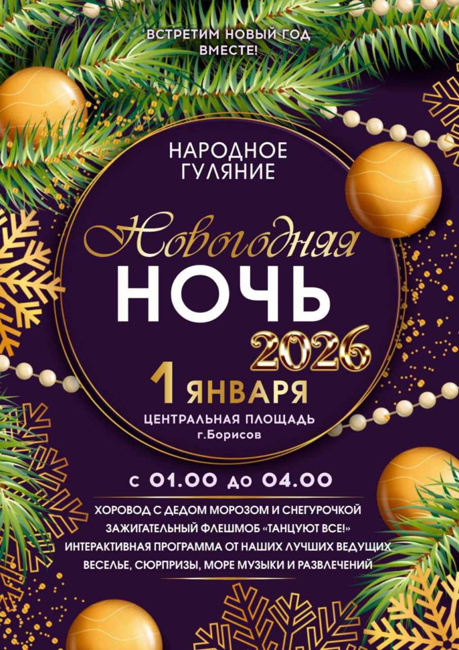 Праздничная программа в новогоднюю ночь на центральной площади Борисова 29.12.2025 Поделиться FacebookTelegramVK Общество Популярное «Спортивный переполох» снова объединил молодых специалистов Борисовщины Криминальный дуэт: в Борисовском районе отчим с пасынком обворовывали дома соседей 12-13 июля на Кургане Славы продолжится V сезон выставок 1 апреля состоится прямая линия по вопросам несвоевременной выплаты заработной платы 85 лет добрых традиций. Борисовская детская музыкальная школа искусств отметила юбилей 10-й клуб в карьере Александра Павловца О чем говорили с учащимися Борисовского кадетского училища на встрече В новогоднюю ночь борисовчан и гостей города ждет праздничная программа у главной елки города. Фото из архива «Адзінства» Поделиться FacebookTelegramVK - Advertisement - Последние новости Завтра в д. Углы будет отсутствовать водоснабжение 29.12.2025 Борисовчанину вручили благодарность за помощь милиции 29.12.2025 Как на Новый год будет работать общественный транспорт на Борисовщине 29.12.2025 Как вырастут зарплаты в бюджетной сфере и пенсии в 2026 году, рассказали в Минтруда 29.12.2025 Мошенничество через мессенджеры: три уголовных дела заведено в Борисове за одни сутки 29.12.2025