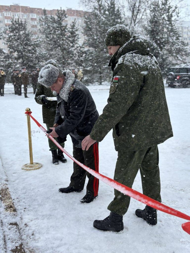 В своем обращении к личному составу он подчеркнул: «Без прошлого нет будущего. Историческая память — это наше наследство, которое помогает нам сохранять культуру, традиции и ценности, и в широком смысле — национальную идентичность. Одной из фундаментальных черт белорусов является готовность защищать свою Отчизну в любых условиях и от любых врагов. Этот памятник будет напоминанием и призывом к самоотверженному служению на благо нашей Родины — Республики Беларусь».