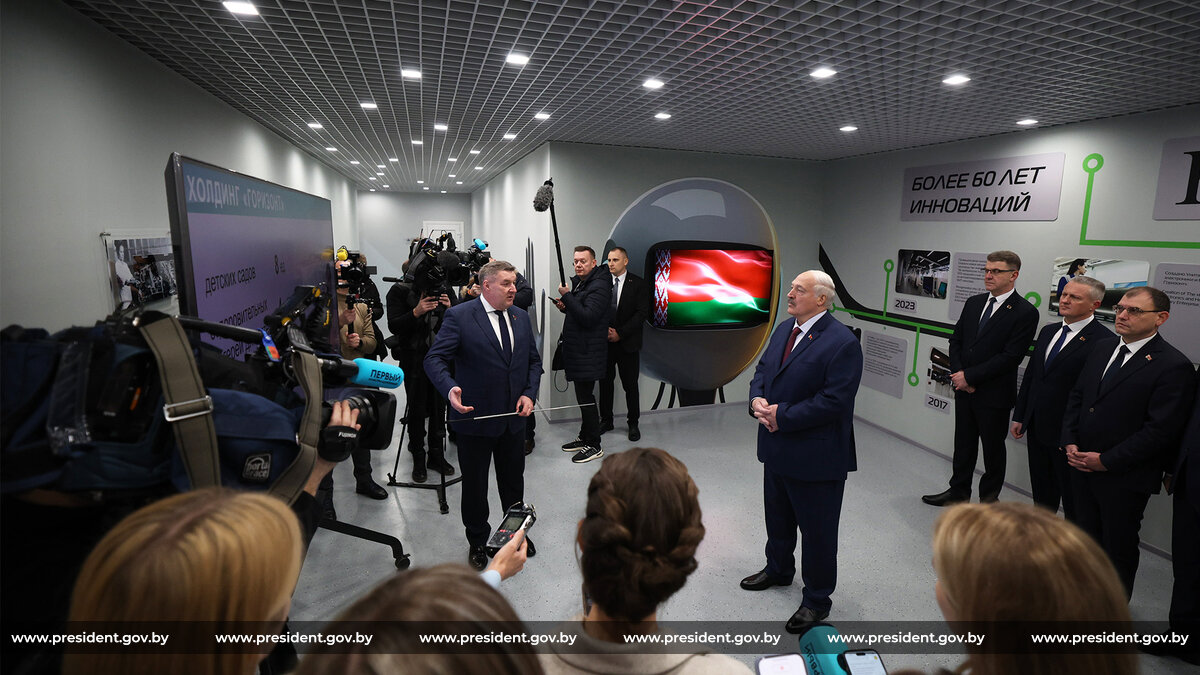 Как доложили Президенту, на современном роботизированном телевизионном заводе собрали все лучшие технологии, обучили специалистов. Всего в холдинг «Горизонт» входят 17 предприятий, где работают около 4,5 тыс. сотрудников. По итогам пятилетки достигнуты трехкратный рост производства и выручки, высокие экспортные показатели. При этом холдинг несет и значительную социальную нагрузку, включая дошкольные, оздоровительные, спортивные учреждения.
