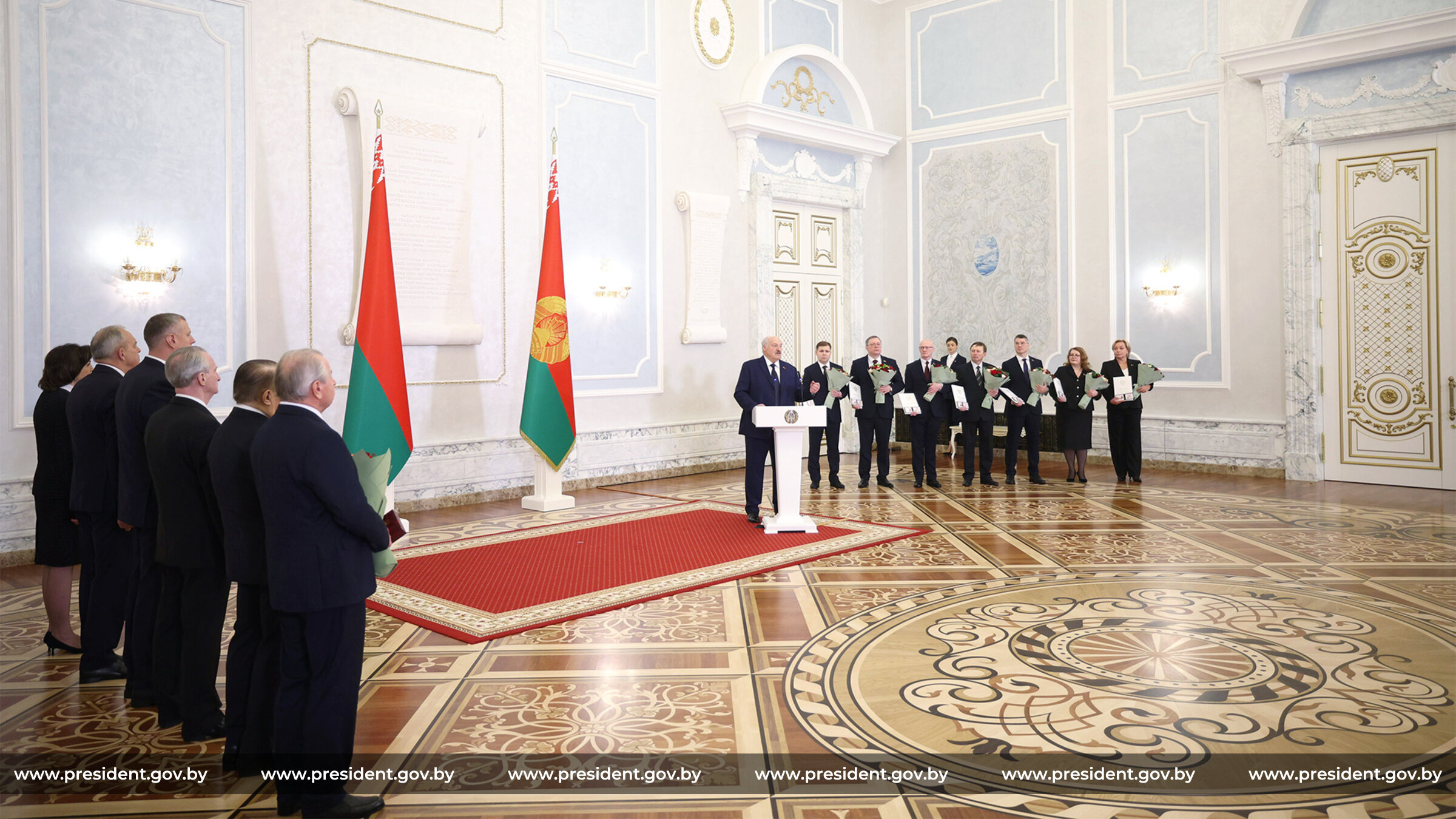 После принесения присяги Александр Лукашенко вручил судьям удостоверения и подарочные экземпляры Конституции Беларуси.