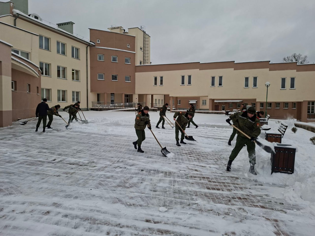 Сегодня кадеты Борисовского кадетского училища Минской области дружно вышли на уборку снега на своей территории. В морозный зимний день они проявили настоящую командную работу и дух единства, очищая свои учебные площади от снежного покрова.