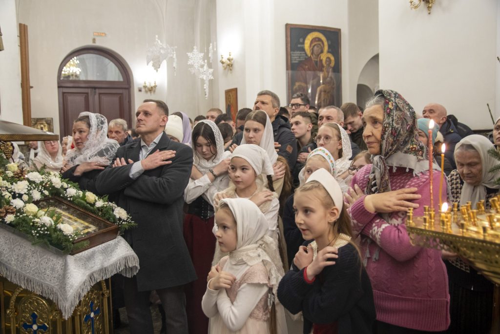 В полночь 7 января 2026 года, в праздник Рождества Господа Бога и Спаса нашего Иисуса Христа, епископ Борисовский и Марьиногорский Амвросий совершил Божественную литургию в кафедральном соборе Воскресения Христова города Борисова.