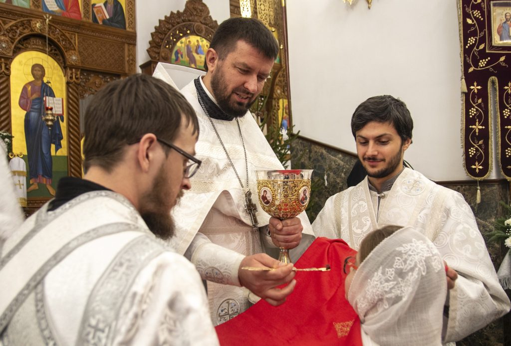 Богослужебные песнопения исполнил соборный хор под управлением иерея Фёдора Малеева и детский хор под управлением регента Ксении Качановской.