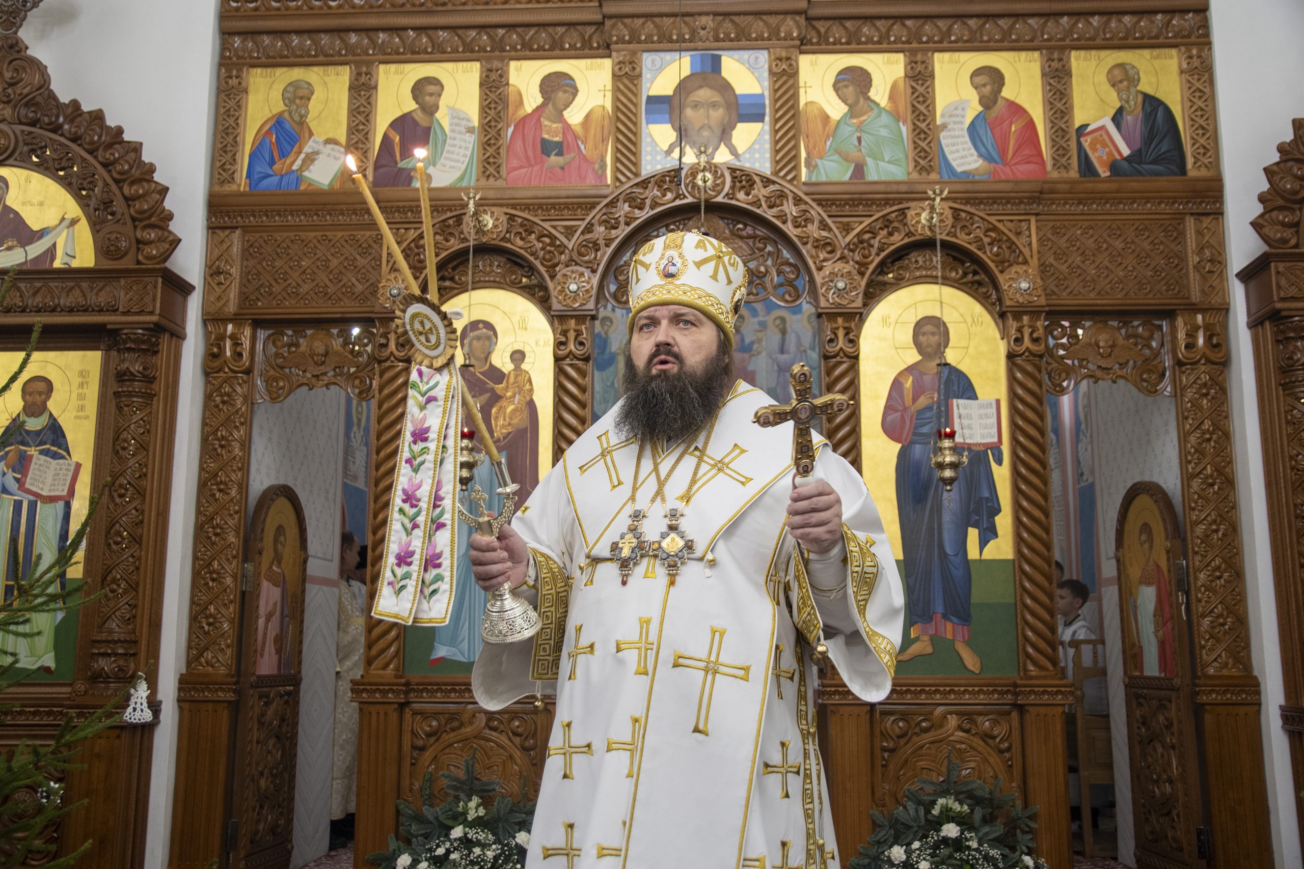 По заамвонной молитве епископ Амвросий и сослужащие священнослужители совершили чин славления празднику Рождества Христова, после чего владыка огласил Рождественское послание Святейшего Патриарха Московского и всея Руси Кирилла, а затем поздравил духовенство и прихожан с праздником Рождества Христова.