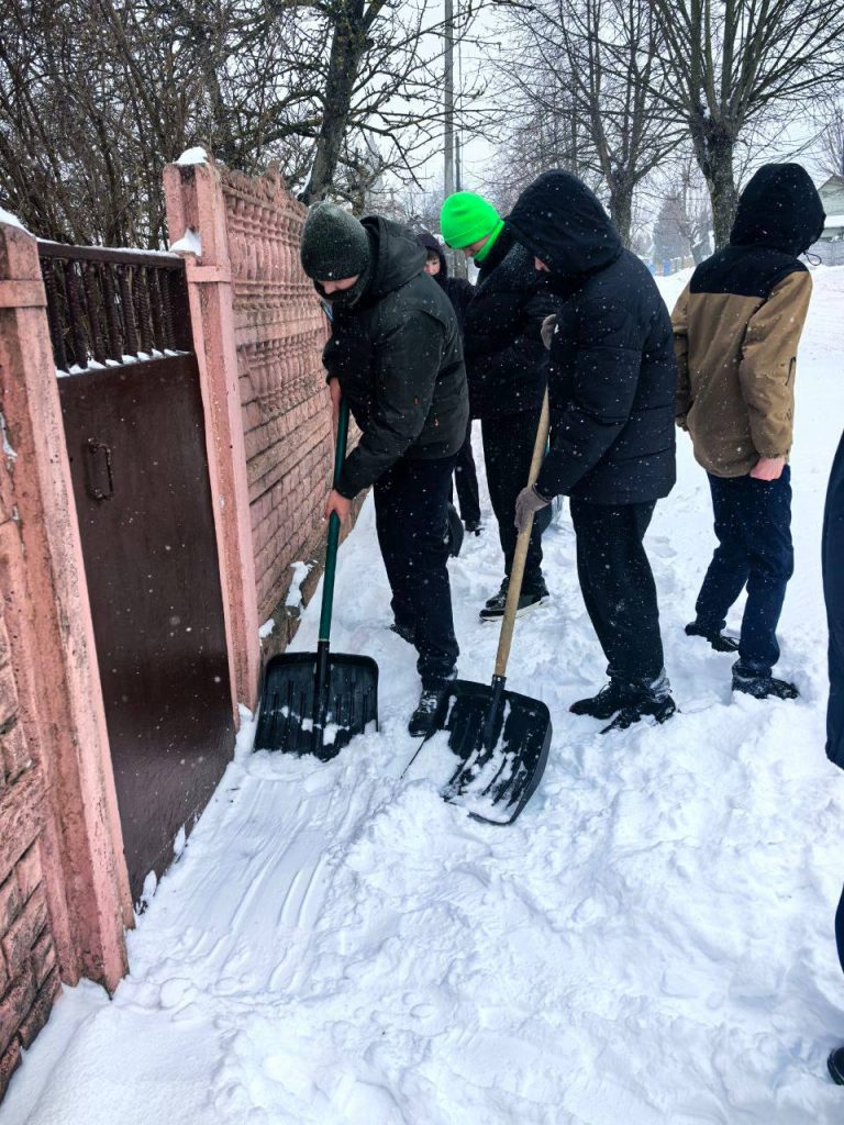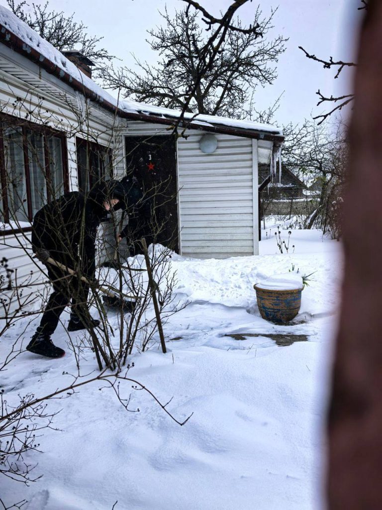 Волонтёры СШ № 13 совершили добрый поступок и помогли узнице Великой Отечественной войны Копыток Эмилии Александровне: убрали придворовую территорию, расчистили дорожки вокруг дома от снега и наледи.