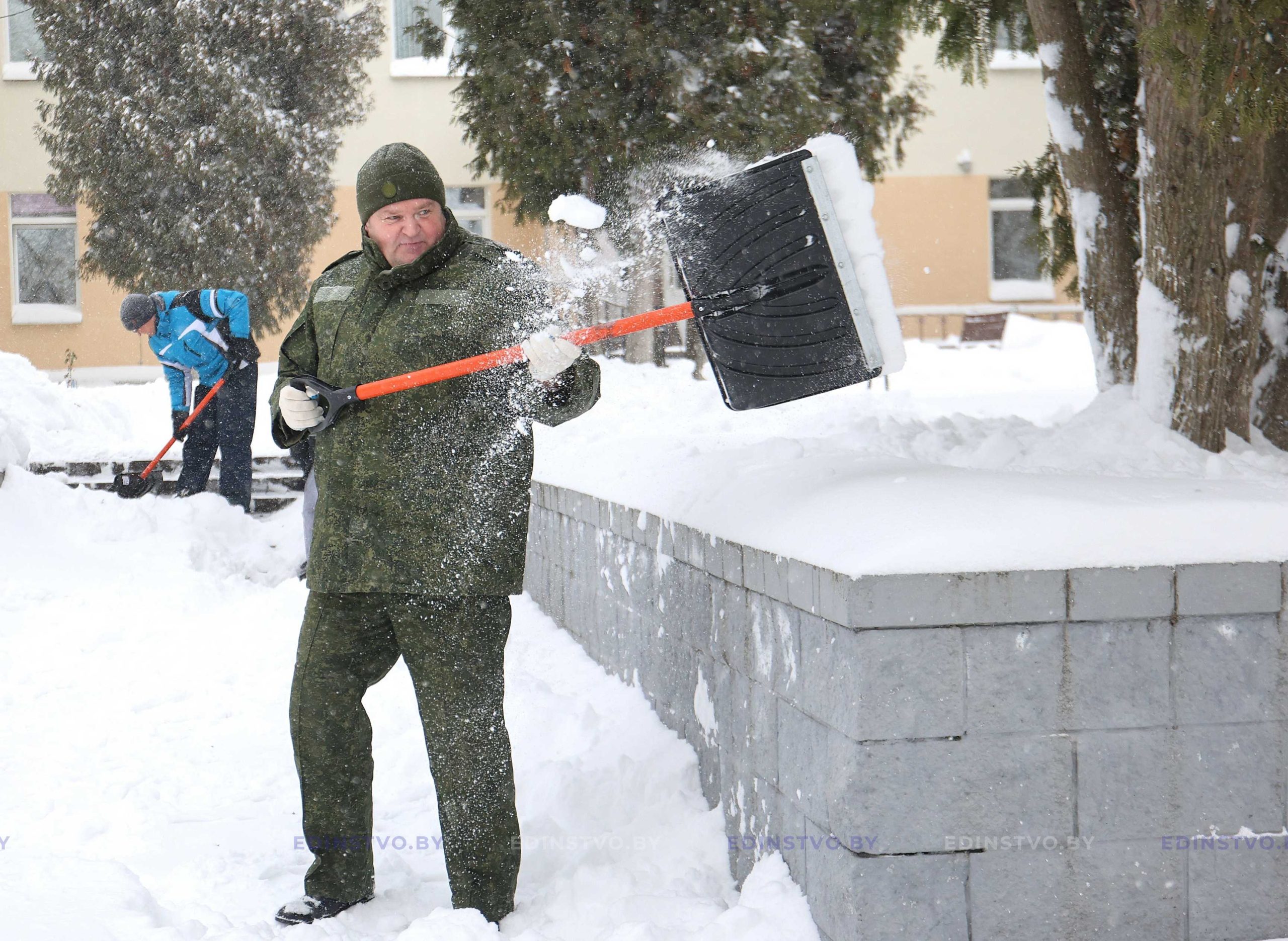 На расчистку снега вышли также заместители председателя райисполкома Николай Швайбович и Егор Мандрик, работники исполкома, а также сотрудники ЦРБ во главе с главным врачом Александром Дроздом и военнослужащие.