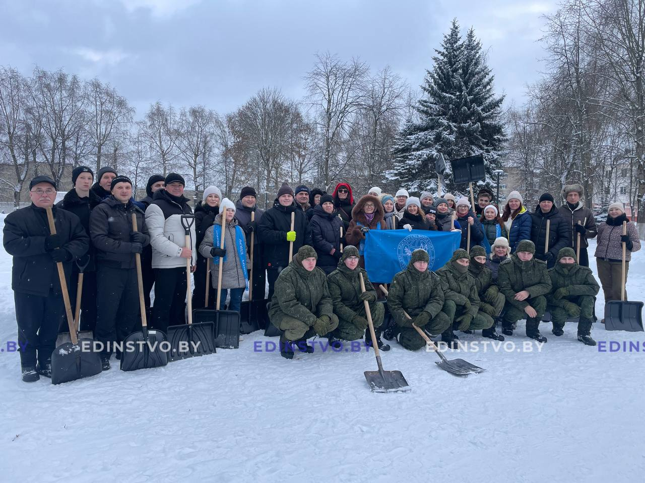 — Мы все долго ждали зиму, она наступила. Но наступила с такими погодными условиями, что коммунальные службы не в силах своевременно убрать такое количество снега. Поэтому наша непосредственная обязанность — своим личным примером показать, что мы справимся с любой стихией. И делаем мы это толокой, — рассказал о своем участии в акции заместитель директора по идеологической работе и управлению персоналом ОАО «2566 завод по ремонту радиоэлектронного вооружения» Владимир Баранский.