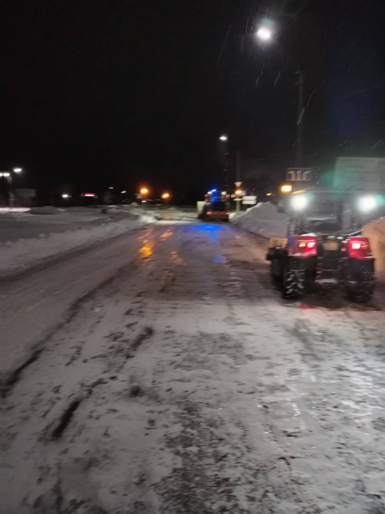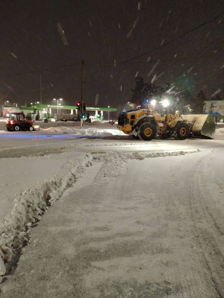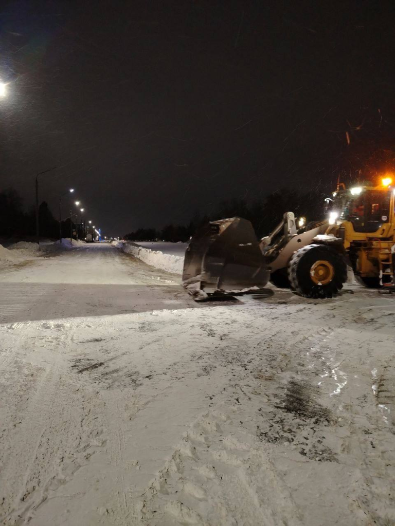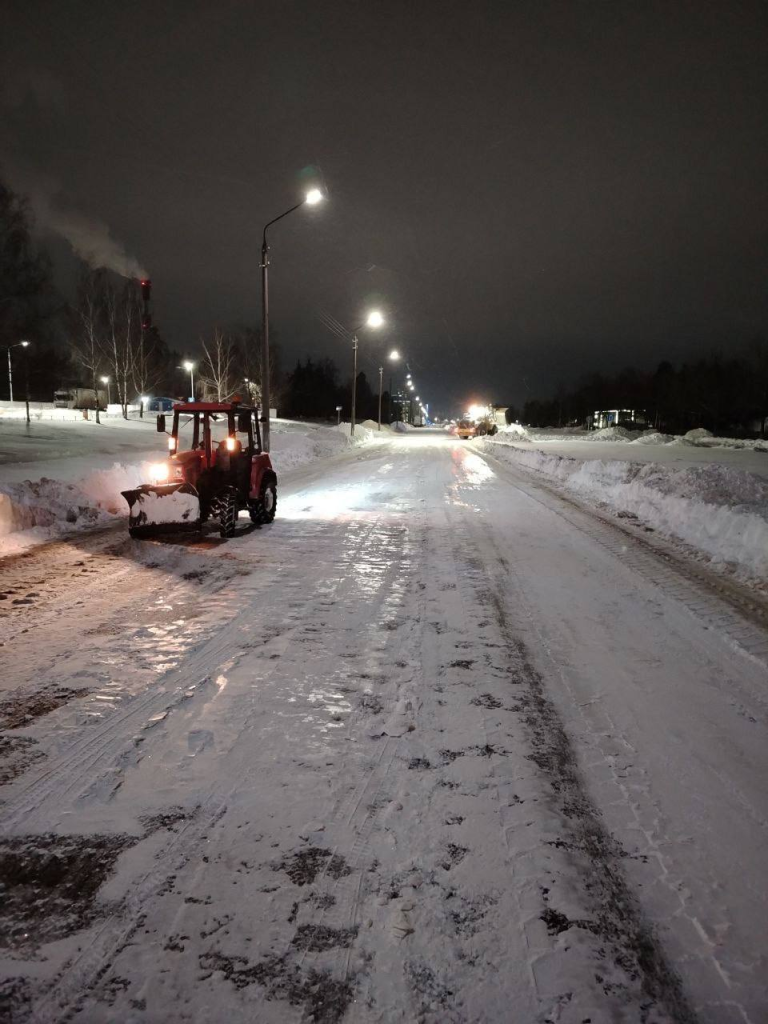 Работы по расчистке снега после сильного снегопада в Борисове продолжаются и в ночное время.