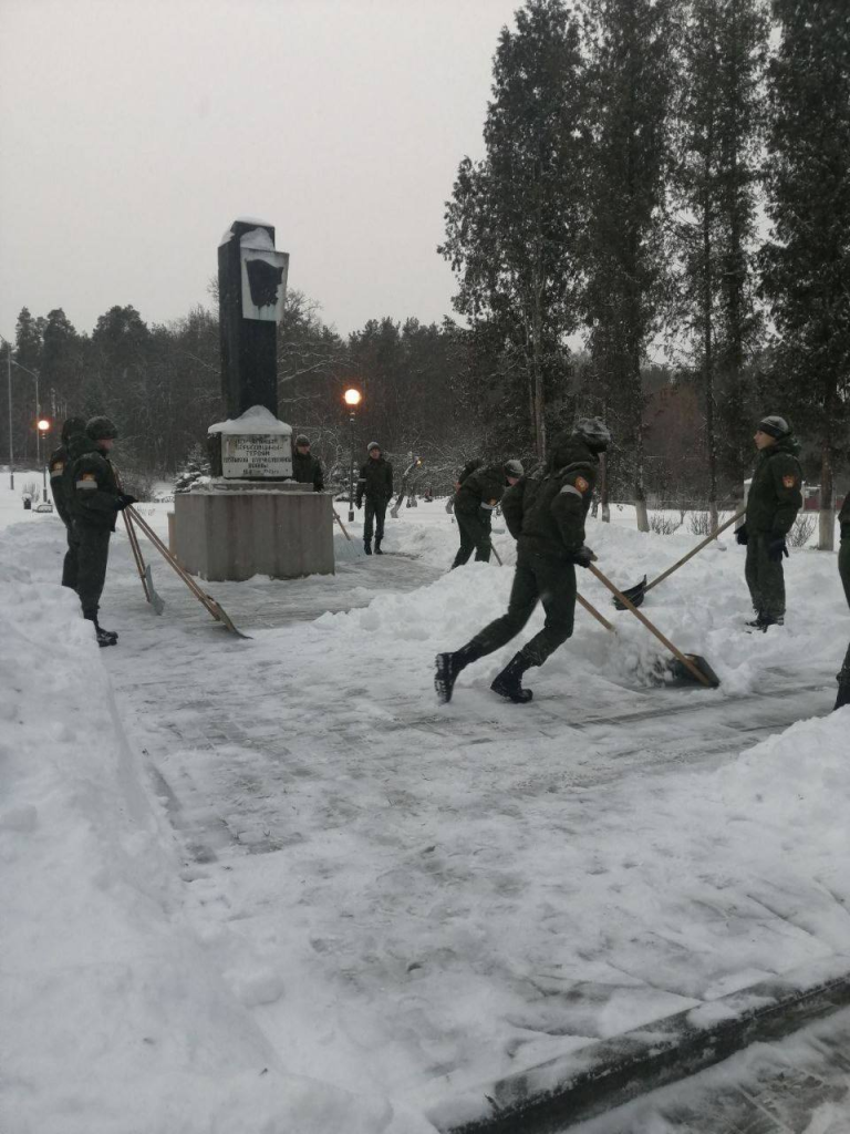 Учащиеся Борисовского кадетского училища Минской области вносят свой вклад в ликвидацию последствий снежного циклона. Вчера они помогали расчищать территорию у храма Великомученика Дмитрия Солунского в агрогородке Старо-Борисове, а сегодня трудовой десант кадет привёл в порядок памятник корчагинцам Борисовщины — героям Великой Отечественной войны.