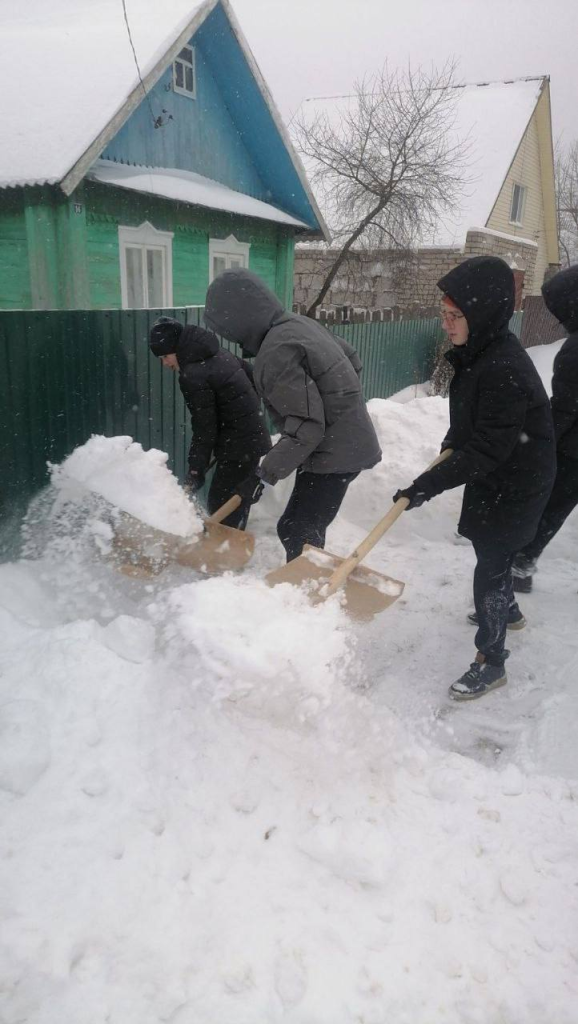 Члены БРО ОО «Белорусский фонд мира», в частности учащиеся средней школы №10, которая носит звание «Школы мира», оказывают помощь ветеранам войны и пожилым гражданам Борисовщины в расчистке территорий от снега.