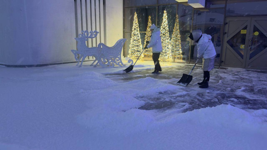Волонтерские группы с утра вышли на улицы, чтобы помочь в устранении последствий сильного снегопада: расчищают тротуары, дворы многоквартирных домов, а также территорий общественных учреждений.