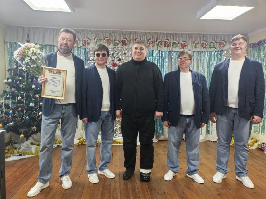 В подарок присутствующим в зале с концертной программой «С Рождеством и Новым Годом» выступил заслуженный любительский коллектив Республики Беларусь – народная мужская вокальная группа «Хорус» из УП «Элект» ОО «Белтиз» (г.Витебск, руководитель И.В. Кецкин). Благодарные зрители аплодировали стоя.