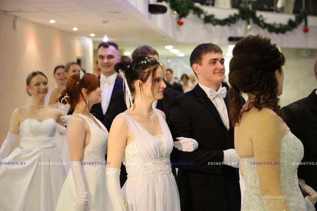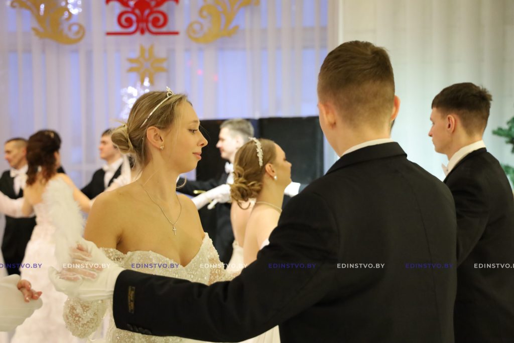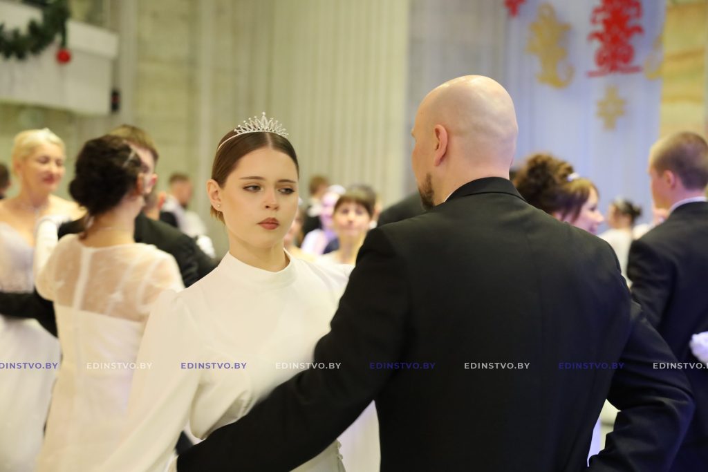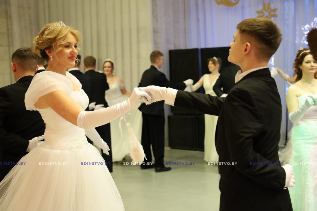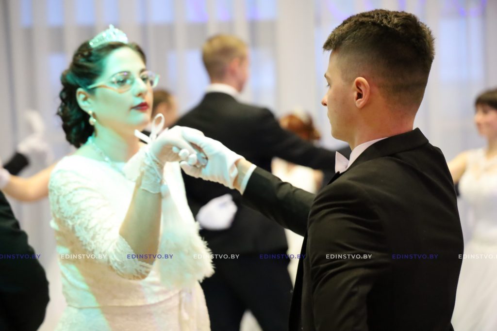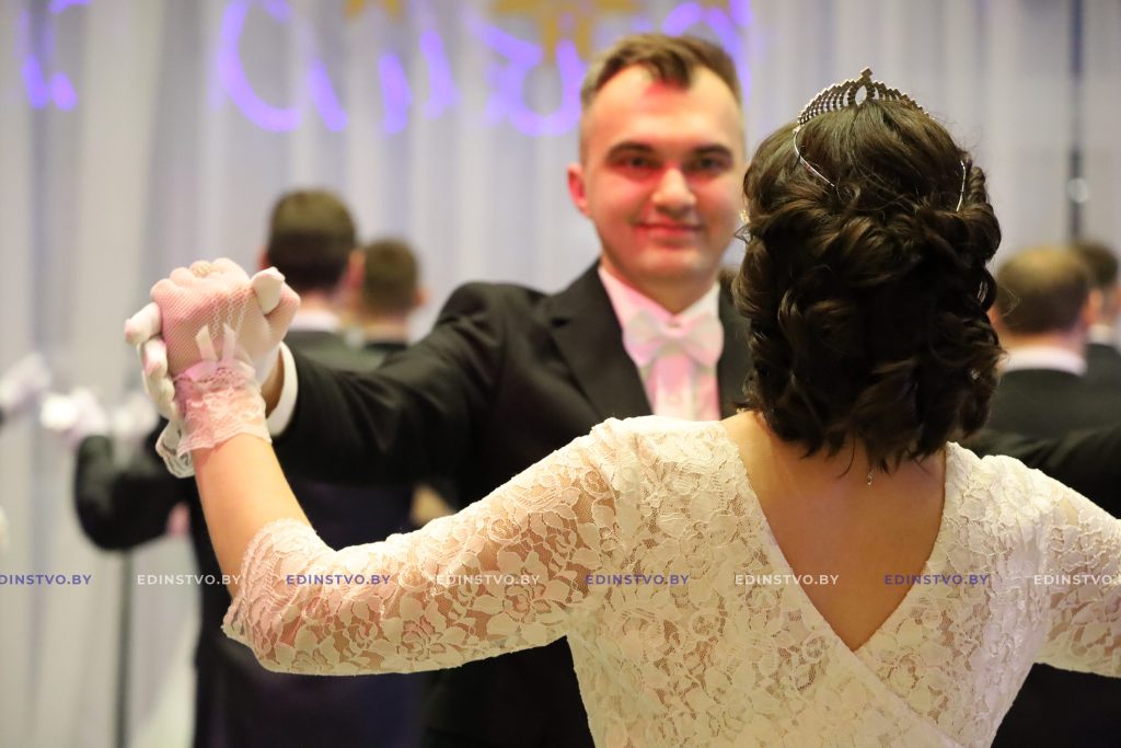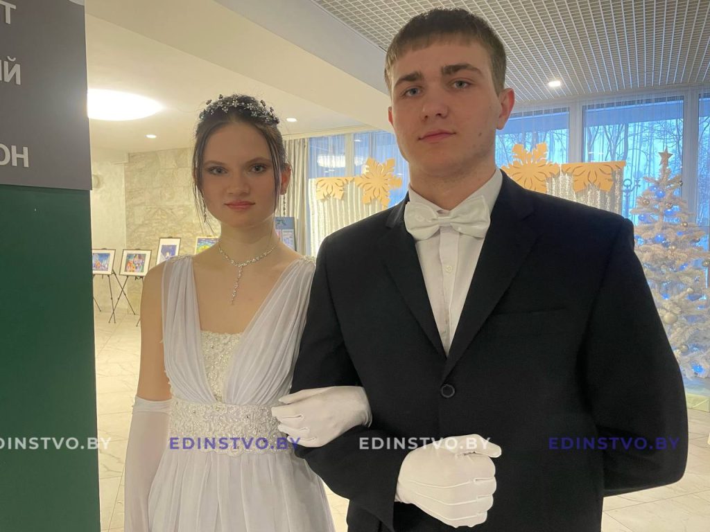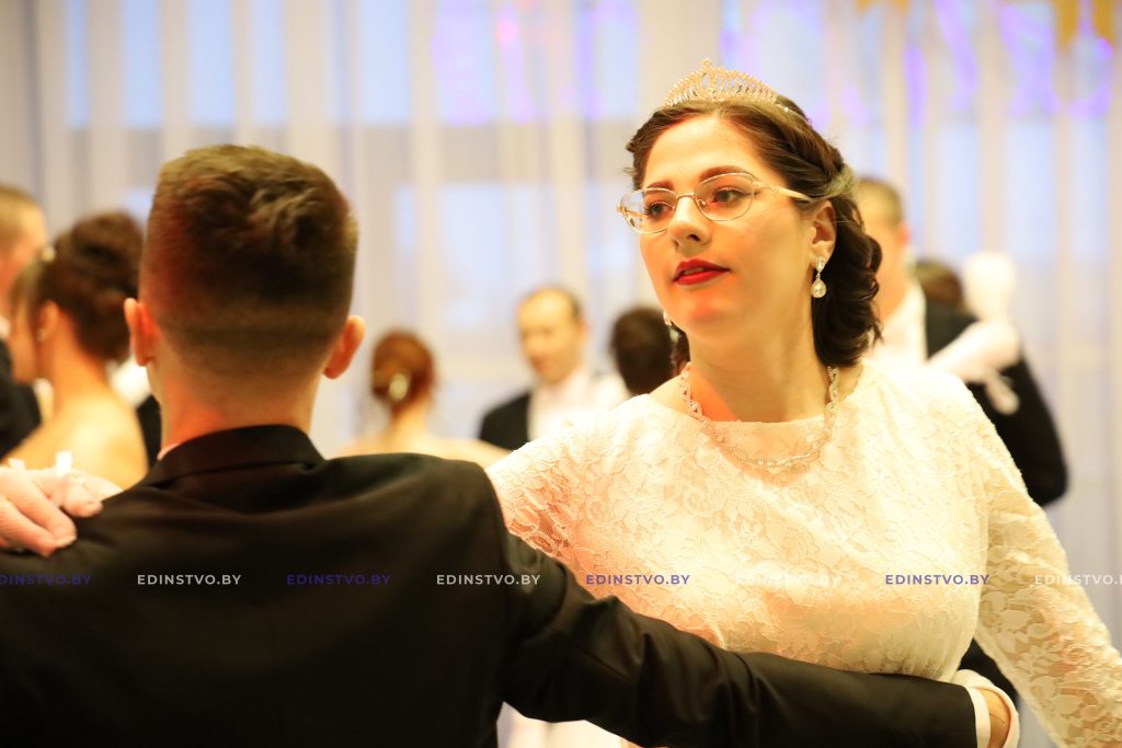 Представительница Борисовского политехнического колледжа Яна Матюхина сегодня танцует в паре с военнослужащим Владиславом Латушкиным. Яна занималась танцами 9 лет, поэтому подготовка к балу, которая началась в ноябре, далась ей несложно. А вот Владислав раньше никогда не танцевал. Но это не мешает ему чувствовать себя на мероприятии уверенно. Многочисленные репетиции того стоили! К слову, девушка была участницей бала в прошлом году.