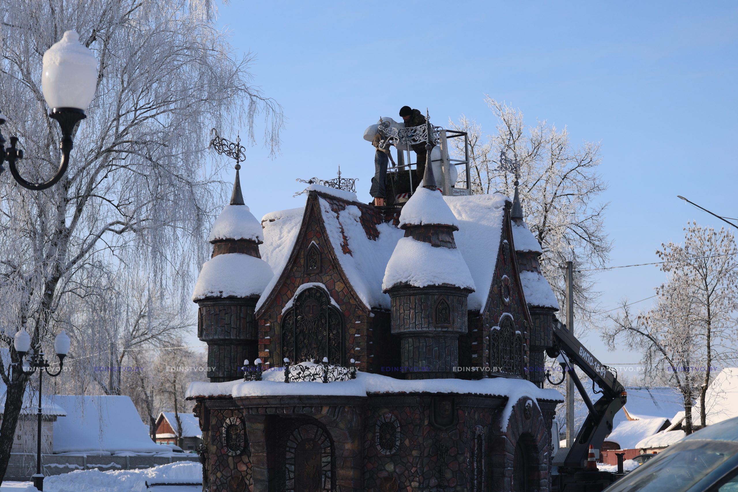 Сегодня возле Дворца культуры им. М. Горького заканчивается монтаж масштабной работы, стилизованной под герб города Борисова — монтируется фигура святого апостола Петра на облаке с двумя ключами, серебряным и золотым, в руке, на новом арт-объекте.