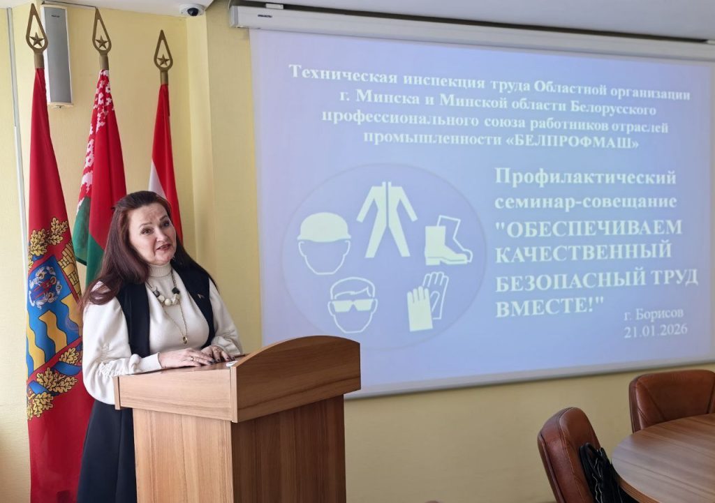 Участие в семинаре приняли первый заместитель председателя Борисовского райисполкома Николай Швайбович, председатель Минского областного объединения профсоюзов Татьяна Гурьева, главный технический инспектор Минского областного объединения профсоюзов Николай Колос, технический инспектор по охране труда Минской областной организации отраслей промышленности БЕЛПРОФМАШ Петр Самчук.