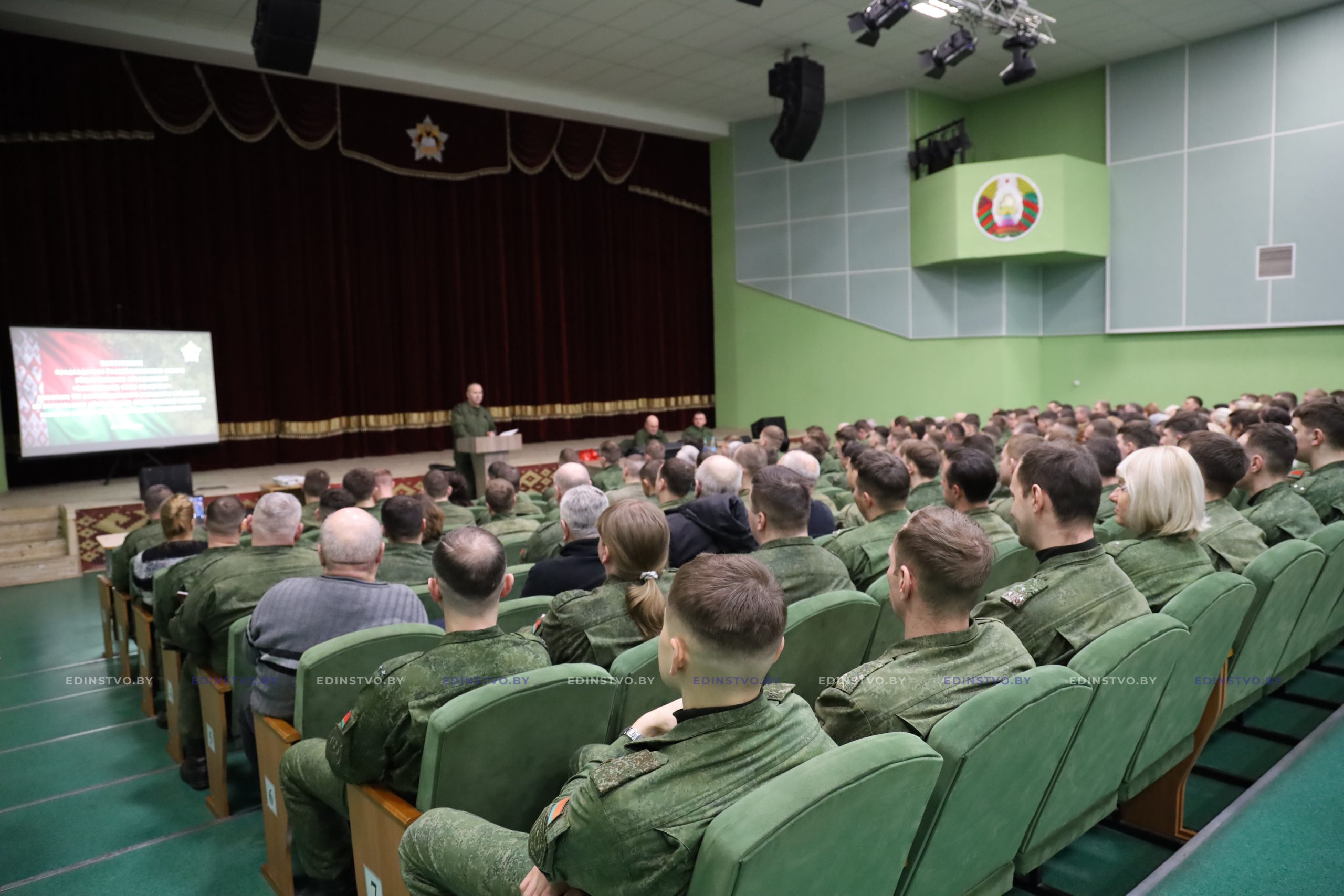 На базе 72-го гвардейского объединенного учебного центра подготовки прапорщиков и младших специалистов прошла встреча председателя Республиканского совета общественного объединения «Белорусский союз офицеров», делегата VII Всебелорусского народного собрания генерал-майора Сергей Бобрикова с военнослужащими, проходящими военную службу по контракту, гражданским персоналом и членами Печинской первичной организации ОО «Белорусский союз офицеров».