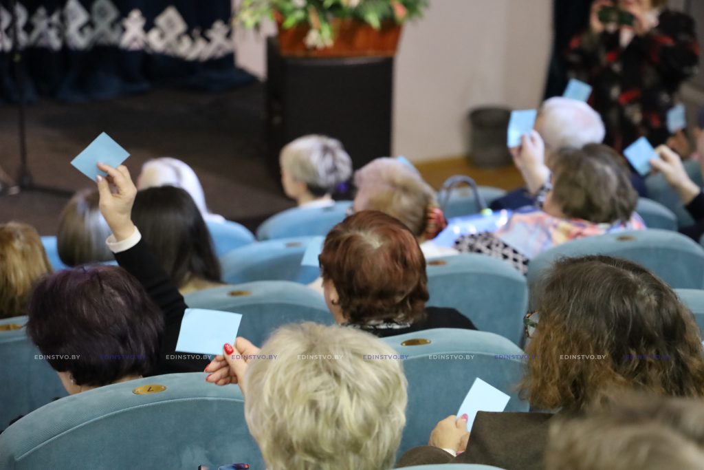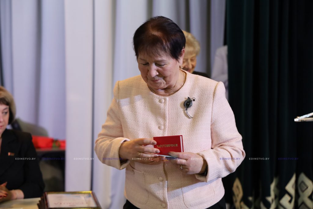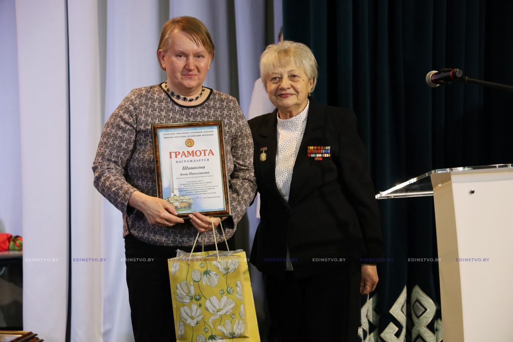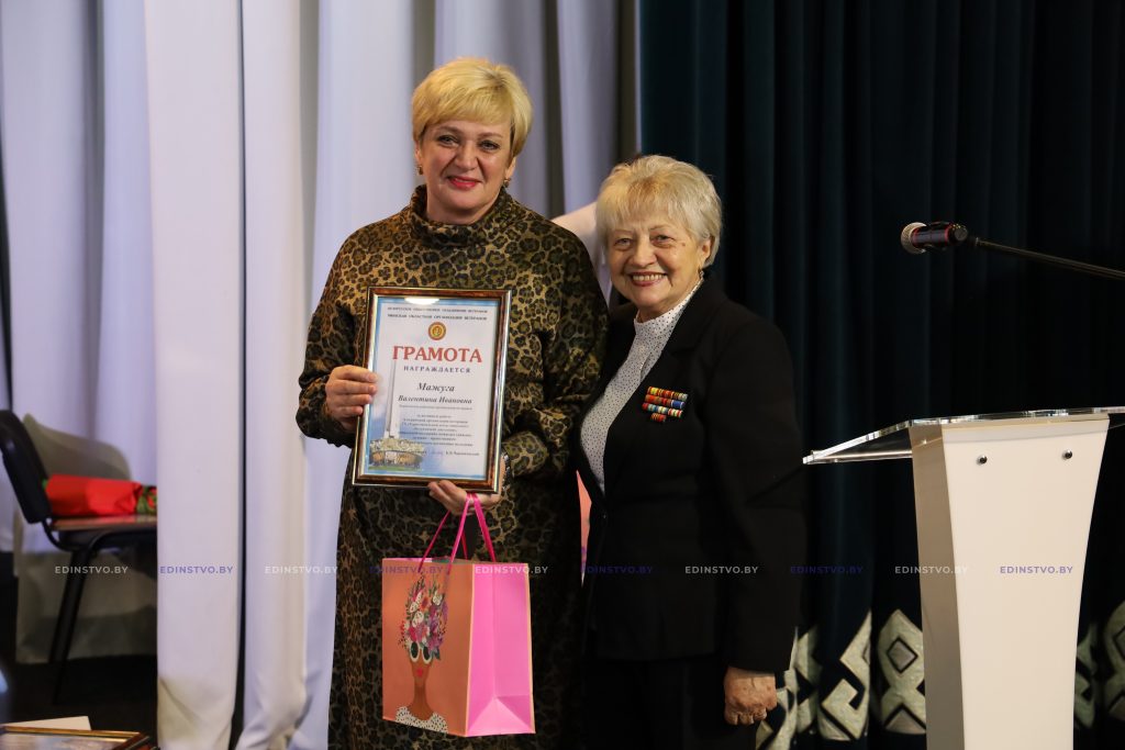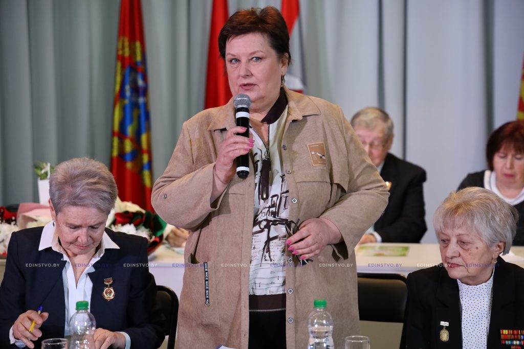 – Борисовский районный совет ветеранов – это не просто общественная организация. В его деятельности заложен мощный идеологический эффект: все, что вы делаете для людей труда и ветеранов войны, напрямую влияет на будущее нашей страны. Своей работой вы подаете пример молодежи и действующему рабочему составу, показывая, с каким уважением необходимо относиться к ветеранам. За это вам огромное спасибо. От имени председателя Борисовского районного исполнительного комитета Николая Карповича хочу передать особые слова благодарности Зое Прокофьевне – за многолетний труд, высокую отдачу и активную гражданскую позицию, – отметила начальник отдела идеологической работы и по делам молодежи райисполкома Татьяна Чуйкова.